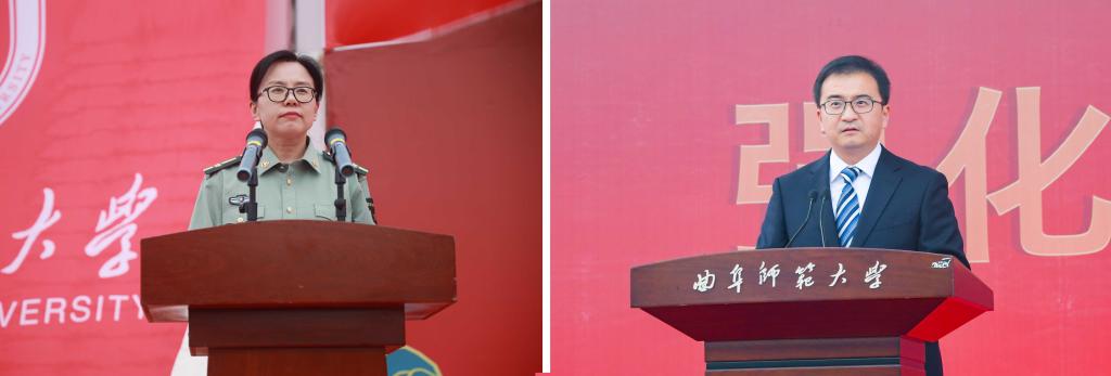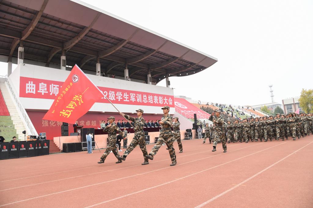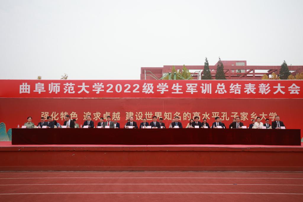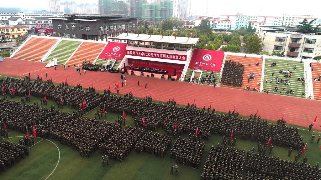 曲阜师大新闻中心讯(通讯员:贺靖平 李欣洋 摄影:刘萌 董少伟 姜曰水 刘扬帆 司娜) 10月16日,D体育在线登录官网2022级学生军训总结表彰大会分别在曲阜、日照两校区隆重举行,2022级全体参训同学面对鲜艳的五星红旗,迈着白杨般挺拔的步伐,唱响了曲园最为振奋人心的嘹亮军歌,彰显出曲园学子坚定不移跟党走、立志建功新时代的大局情怀和使命担当。学校党委副书记卢国强,党委常委、副校长胡凡刚,党委常委、副校长纪洪涛出席大会。学校相关党政部门负责人、军训领导小组成员、军训团组成人员、各学院党委书记、党委副书记、2022级辅导员、军训教官,参加大会。大会分别由学生工作处处长、军训旅副旅长姜美颖,团委书记、军训旅副政委孔轶众主持。