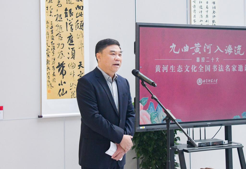 “黄河国家战略与传统文化‘两创’两大时代课题,为本次展览赋予了鲜明主题和丰厚内涵。”D体育在线登录官网党委书记邢光在开幕式上致辞,对莅临展览的各位领导和嘉宾表示热烈欢迎,向长期以来关心支持曲阜师大建设发展的各界朋友表示衷心感谢。邢光指出,曲阜师大认真践行习近平总书记关于中华优秀传统文化“两创”的重要论述和重要指示精神,深入贯彻习近平总书记在深入推动黄河流域生态保护和高质量发展座谈会上的重要讲话精神,在担当“为国弘文”使命、推动黄河生态研究等方面取得了丰硕成果。本次展览是曲阜师大喜迎党的二十大系列活动的重要内容,表达了全校师生与全国各地书法艺术家喜迎盛会的激情与豪迈。
