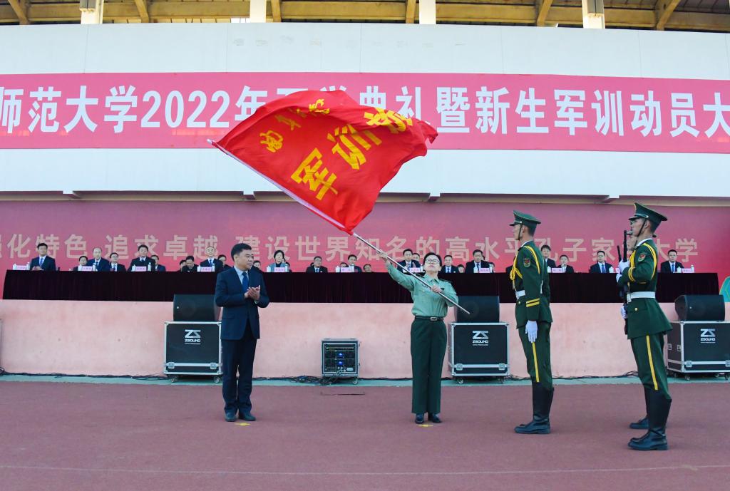 党委书记邢光在曲阜校区为军训旅授旗