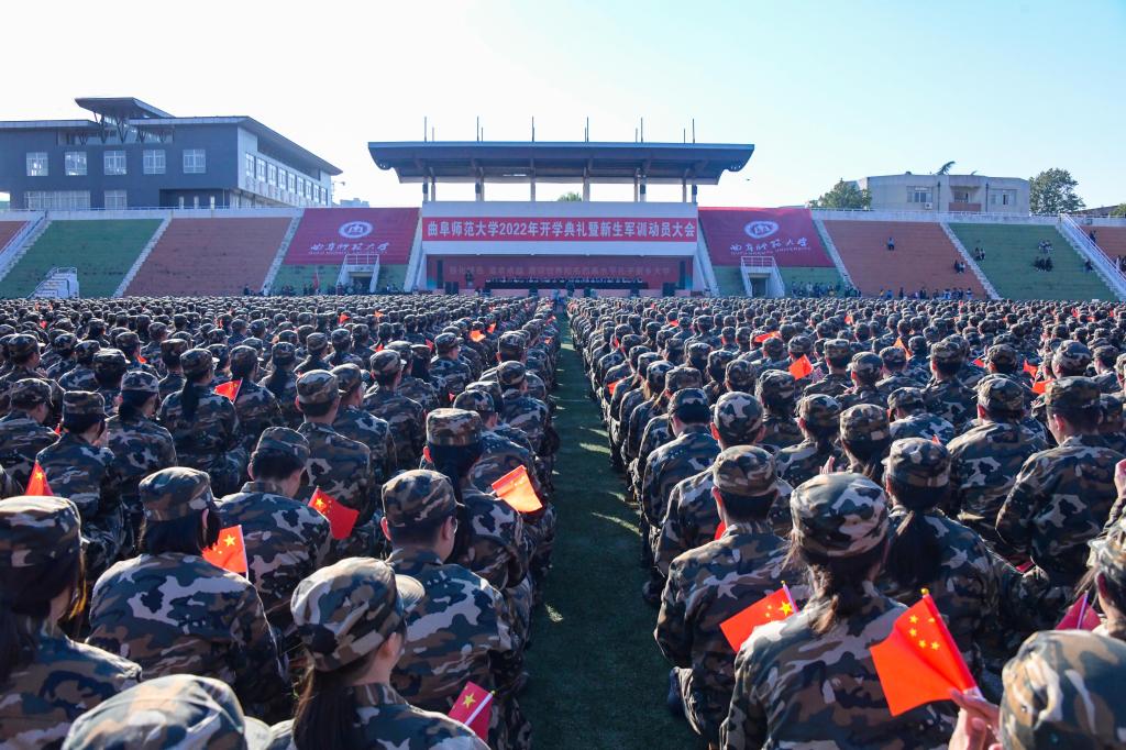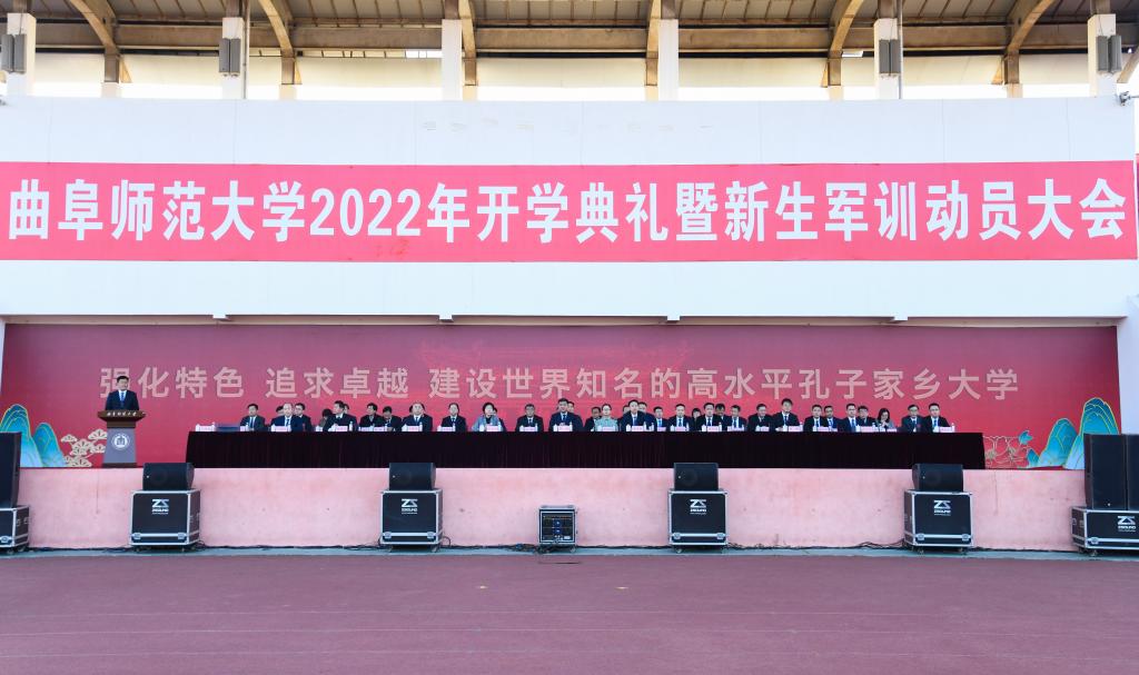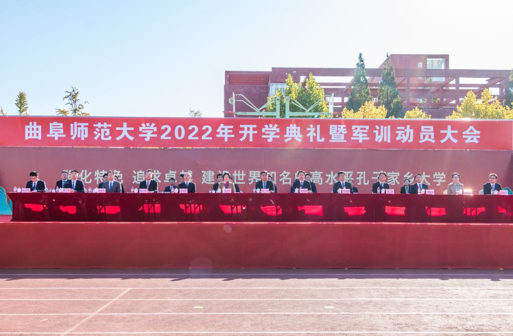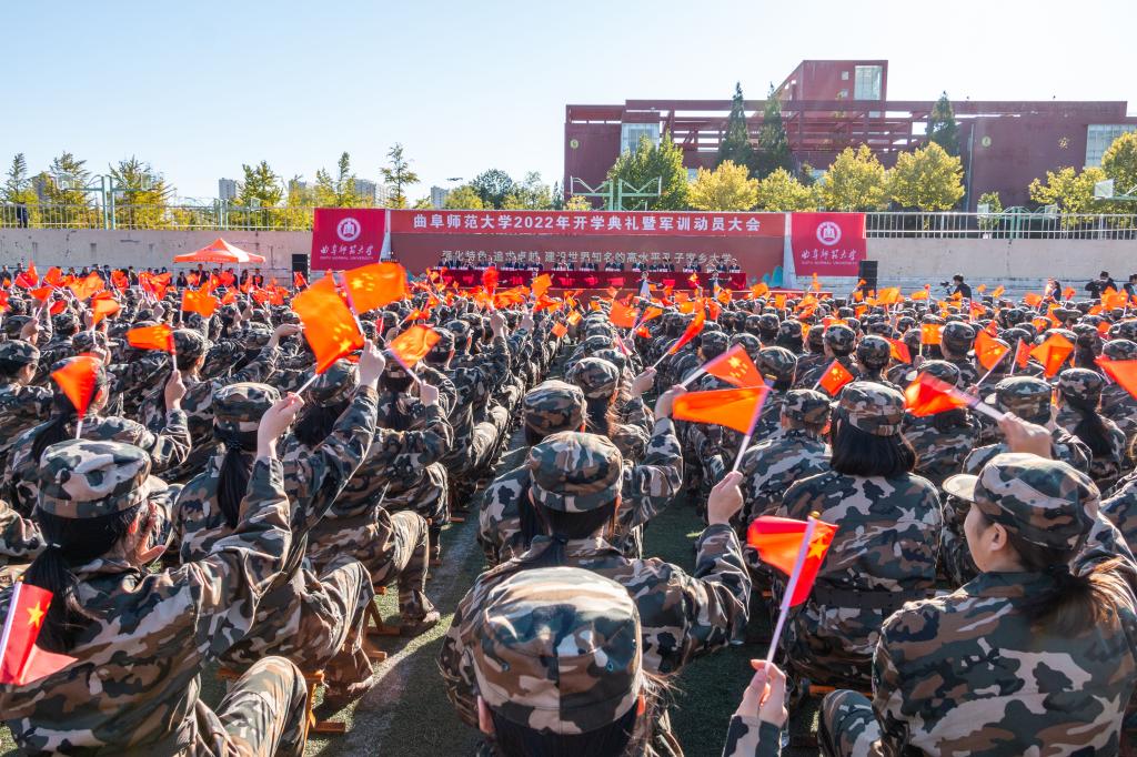 曲阜师大新闻中心讯(记者:李文振 孙红梅 摄影:刘萌 马林梓 董少伟 摄像:袁玭) 10月10日,D体育在线登录官网隆重举行2022年开学典礼暨军训动员大会。8013名本科生、2267名硕士研究生和118名博士研究生,同上开学“思政大课”,感悟曲园“大学之道”,笃定追求卓越之志,砥砺“强国有我”的理想信念。