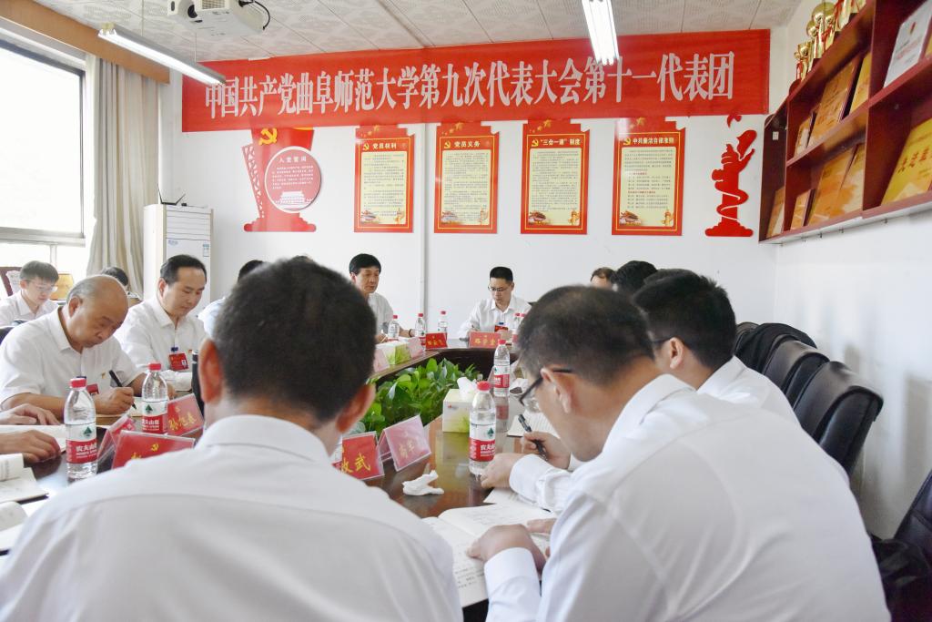 曲阜师大新闻中心讯 (记者:孙红梅  摄影: 刘萌 董少伟 姜曰水 孙红梅)9月19日下午,中国共产党D体育在线登录官网第九次代表大会各代表团举行第一次会议,各代表团临时召集人主持了会议。