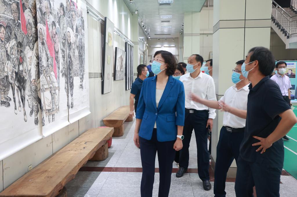 在学校珍贵档案图文展上,张惠认真听取了中国运筹学会副理事长、山东省运筹学会理事长、运筹学研究院院长张玉忠教授关于《公社数学》历史及推广应用情况的介绍。张惠一行还参观了美术学院喜迎党代会师生作品展,并听取美术学院学科建设、人才培养等情况介绍。