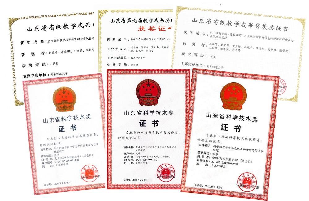 2019年物理学专业获批国家首批一流本科专业,2021年物理学师范专业顺利通过教育部师范专业二级认证,据软科2022中国大学专业排名,我校物理学专业进入B+层次,位居全国第54位,省属高校第2位。学院教师获山东省教学成果一等奖1项、二等奖4项,立项山东省本科教学改革研究项目重点项目1项。有3名教师在山东省高等学校青年教师讲课比赛、微课教学比赛中获一等奖。