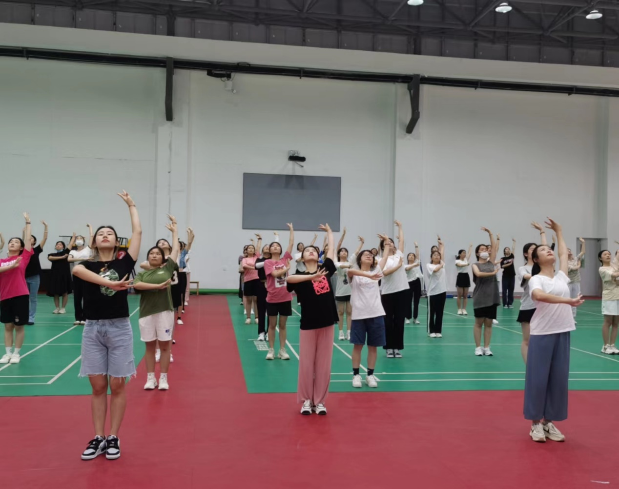 据悉,山东省第25届运动会将于8月25日在日照市开幕,我校180名大学生经选拔成为省运会开闭幕式群众演员,将通过近两个月的封闭训练后参加到开闭幕式表演工作中。自封闭训练以来,学生们克服了天气炎热、训练强度大等困难,积极配合排演工作,为省运会的顺利开幕贡献曲园的青春力量。