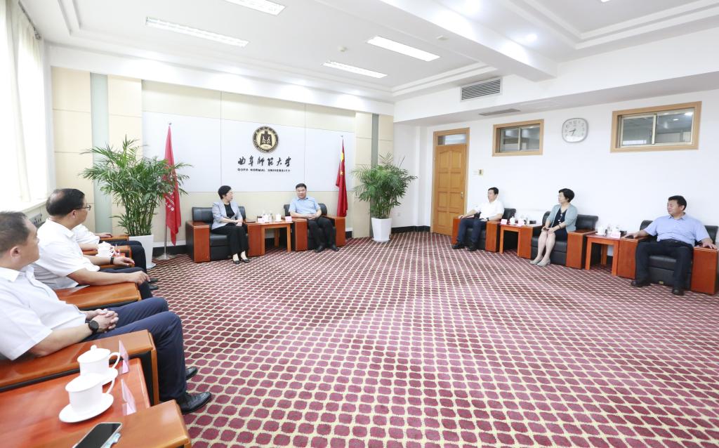 曲阜师大新闻中心讯(记者:孙琪) 7月14日上午,曲阜市委书记李丽一行到曲阜师大调研,D体育在线登录官网党委书记邢光、校长张洪海、党委副书记李志红、副校长纪洪涛会见来宾并举行座谈。