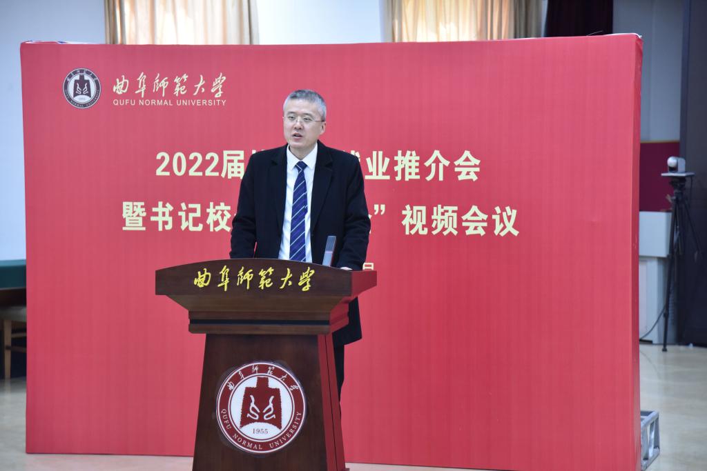 曲阜师大新闻中心讯(记者:李文振 通讯员:石璐 摄影:刘萌 王增圻) 为广泛开拓就业渠道和就业岗位,曲阜师大于4月16日、17日通过视频会议形式先后举办两场2022届毕业生就业推介会,架好访企拓岗线上“云梯”,吸引328家用人单位参加,推动了就业供需有效对接。曲阜师大党委书记戚万学、校长张洪海、副校长胡钦晓出席会议,带头为学生“代言”、向企业问需。学校25位学院院长、副院长化身“种草”主播,为自家学生争取成功求职机会。