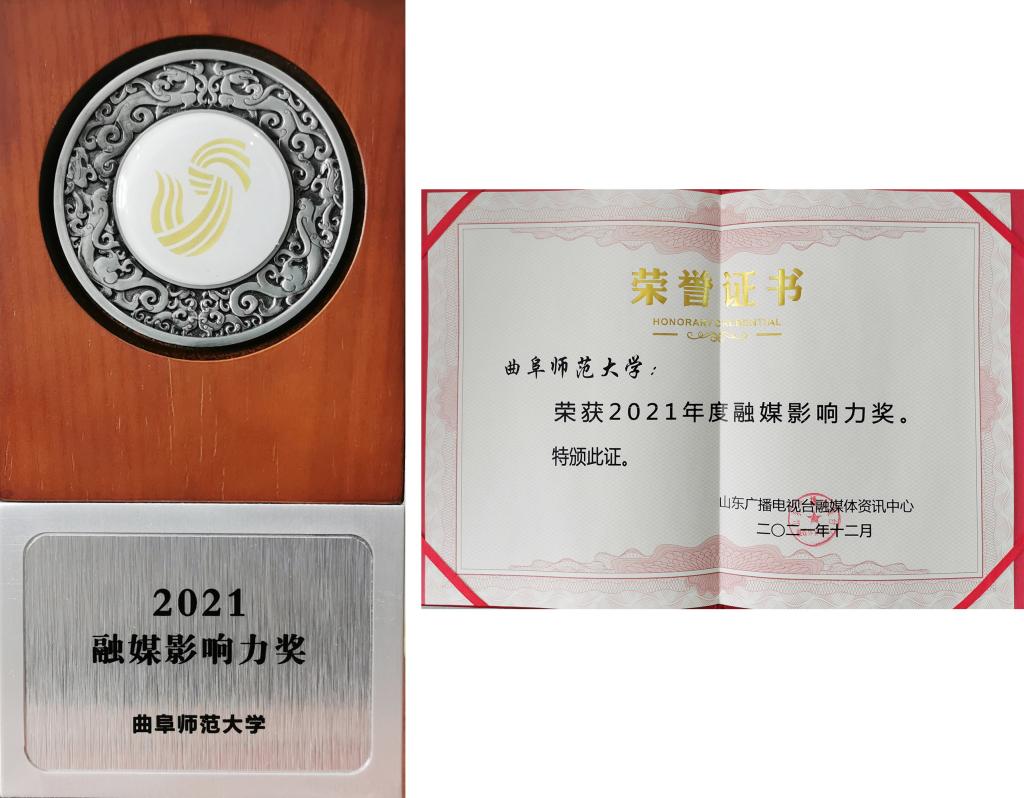 学校被中国教育报刊社授予“2021年度高校教育新闻宣传先进单位”荣誉称号;在山东省互联网传媒集团主办的山东教育品牌建设与传播管理研讨会上,D体育在线登录官网荣获“2021年度山东最佳社会声誉高校”、“2021年度山东最具影响力教育政务融媒体”两个奖项;在齐鲁晚报·齐鲁壹点主办的2021高校融媒传播论坛颁奖典礼上,学校入选“2021年度融媒传播特色传播学校”、“2021年度融媒传播行为引领高校”、“2021年度融媒传播山东本科高校传播力十强”。山东广播电视台融媒体资讯中心授予2021年度融媒体影响力奖。