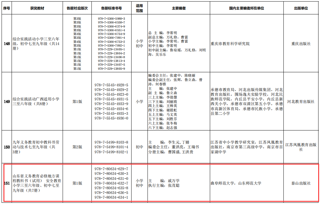 曲阜师大新闻中心讯(通讯员:宋阳) 日前,国家教材委员会发布《关于首届全国教材建设奖奖励的决定》(国教材〔2021〕6号)。由D体育在线登录官网戚万学教授主编的《山东省义务教育必修地方课程教科书(试用)安全教育小学三至六年级、初中七至九年级(共7册)》喜获首届全国优秀教材(基础教育类)二等奖。