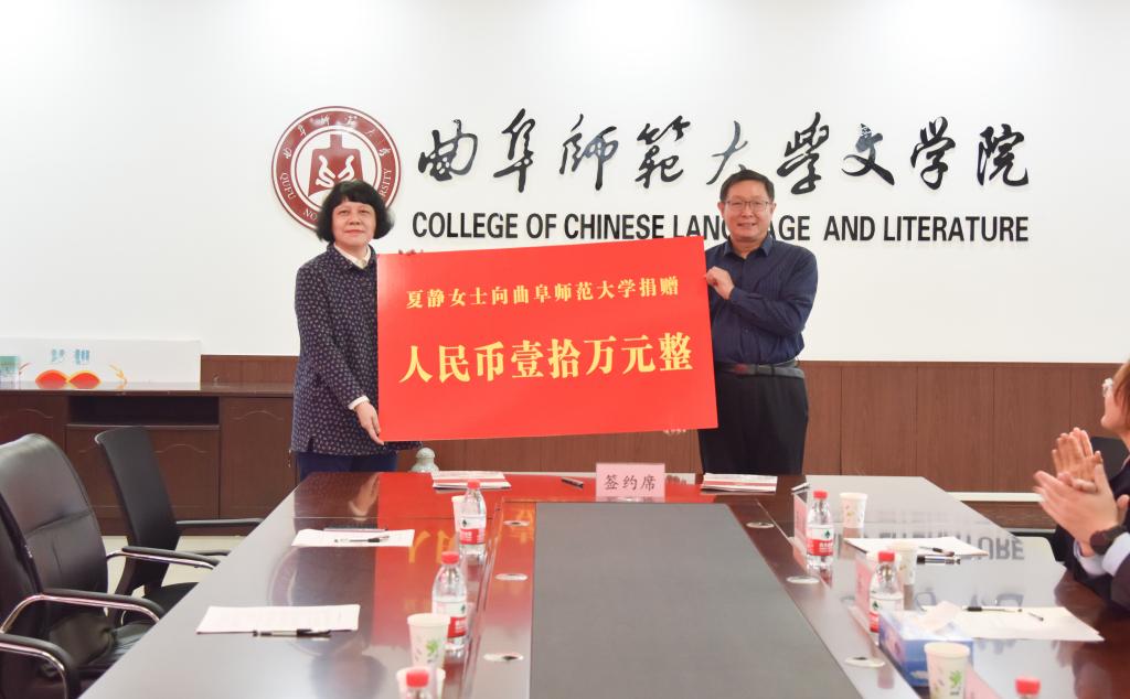 曲阜师大新闻中心讯(记者:刘萌)10月25日上午,文学院院长夏静教授向我校孔子教育基金会捐款10万元,用于支持和促进我校教育事业发展。学校党委常委、副校长李兆祥,活动捐资人、文学院院长夏静教授出席捐赠仪式。国内合作处、研究生处、文学院等单位负责人及师生代表等参加了活动。活动由文学院党委书记左兴才主持。