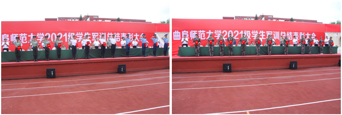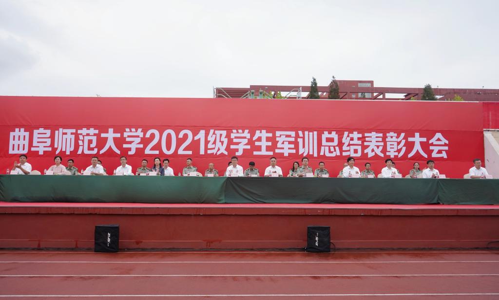 曲阜师大新闻中心讯(通讯员:孙雯 徐静 王乐琦 摄影:李文振 姜曰水 马林梓 刘扬帆 尹哲睿 张柯元 彭宇涵 王菡) 9月24日、25日,曲阜师大2021级学生军训总结表彰大会分别在曲阜、日照两校区隆重举行,2021级全体参训同学以昂扬的风貌、如虹的气势奏响了曲园的嘹亮军歌,彰显出曲园学子立志爱党报国、争做“强国一代”的赤诚情怀。学校党委常委、副校长卢国强、李兆祥,党委常委、宣传部部长张隆海,出席大会。学校相关党政部门负责人、各学院党委书记、2021级辅导员、军训教官等,参加了大会。大会由学生工作处处长、武装部部长、军训旅副旅长姜美颖主持。