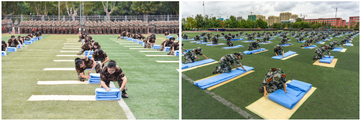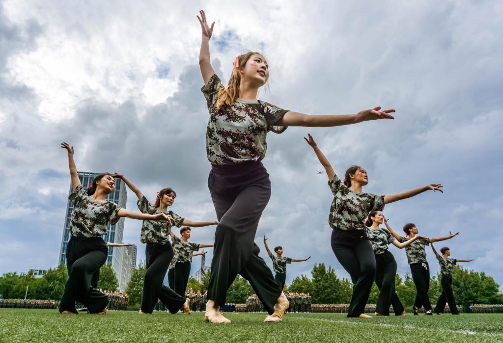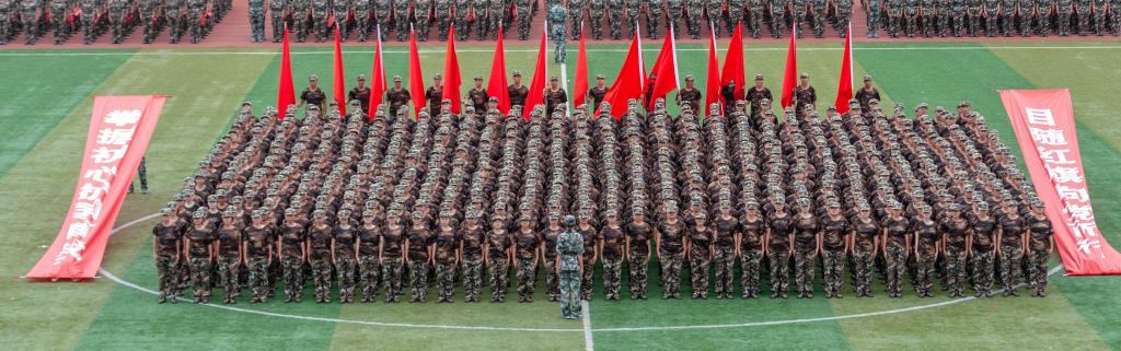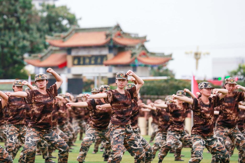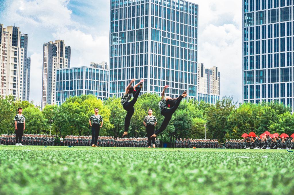 大会在全体师生齐唱国歌中拉开帷幕。在随后的军训汇报表演中,曲园学子们精神抖擞、意气风发,队列方阵动作整齐、军姿飒爽,擒敌拳方阵招式凌厉、气势强劲,内务方阵井然有序、一丝不苟,棍术方阵铿锵有力、势如破竹,旗语方阵干净利落、整齐划一,定向越野方阵步履矫健、配合默契,心理健康操方阵在优美舞姿中绽放青春风采、表达美好祝福,军训教官组成的战地救护和格斗方阵尽显无畏精神与英雄气概,获得阵阵掌声和欢呼。汇演过程中,参训同学还通过队列阵型摆出了“1921—2021”“百年初心,牢记使命”“请党放心,强国有我”“我爱曲园”等字样,表达出热烈的爱党爱国、爱校荣校之情。