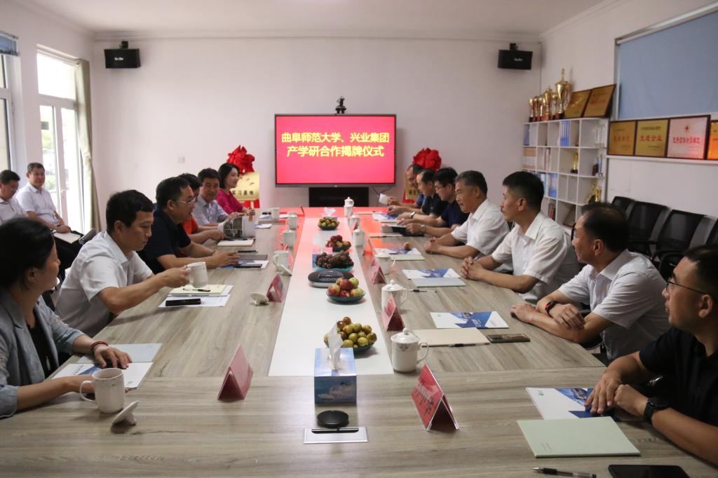 曲阜师大新闻中心讯(通讯员:王增圻)8月13日下午,D体育在线登录官网与日照兴业集团产学研合作揭牌仪式在日照兴业集团举行。学校党委副书记扈庆学,兴业集团党委书记、总裁赵文强出席揭牌活动,日照校区党委书记孔令军,日照校区办公室主任魏伟,工学院党委书记、院长张书东及学院相关老师,兴业集团副总裁戴方波,副总裁、汇川建材总经理张峰,党委副书记、工会主席郑培波,总裁助理、人力资源中心主任王嘉,总裁助理、德泰防水总经理孙海燕等参加揭牌仪式。