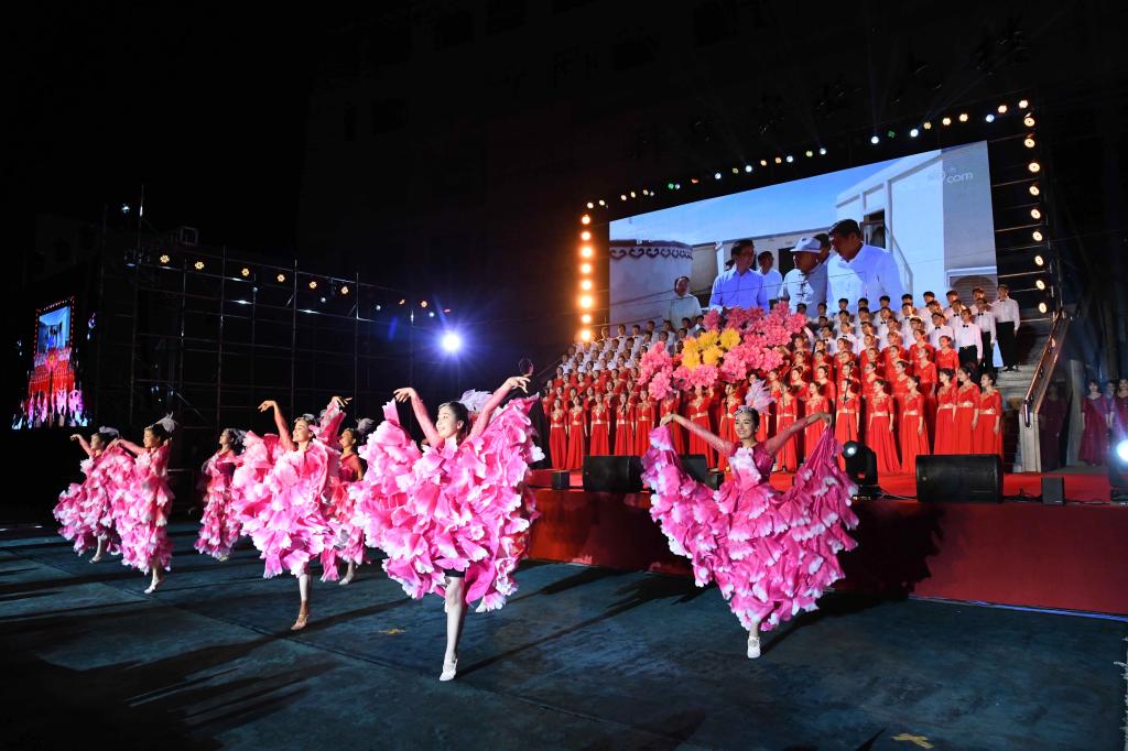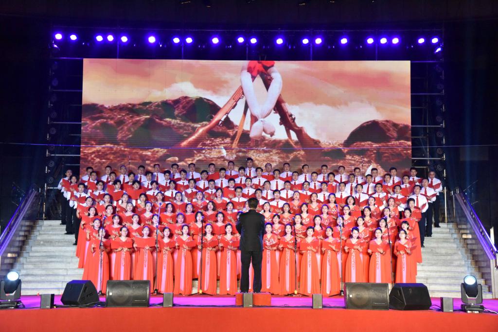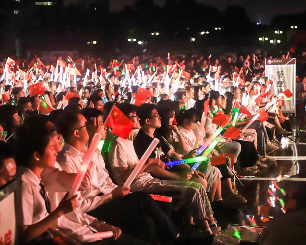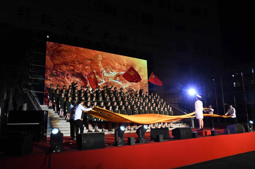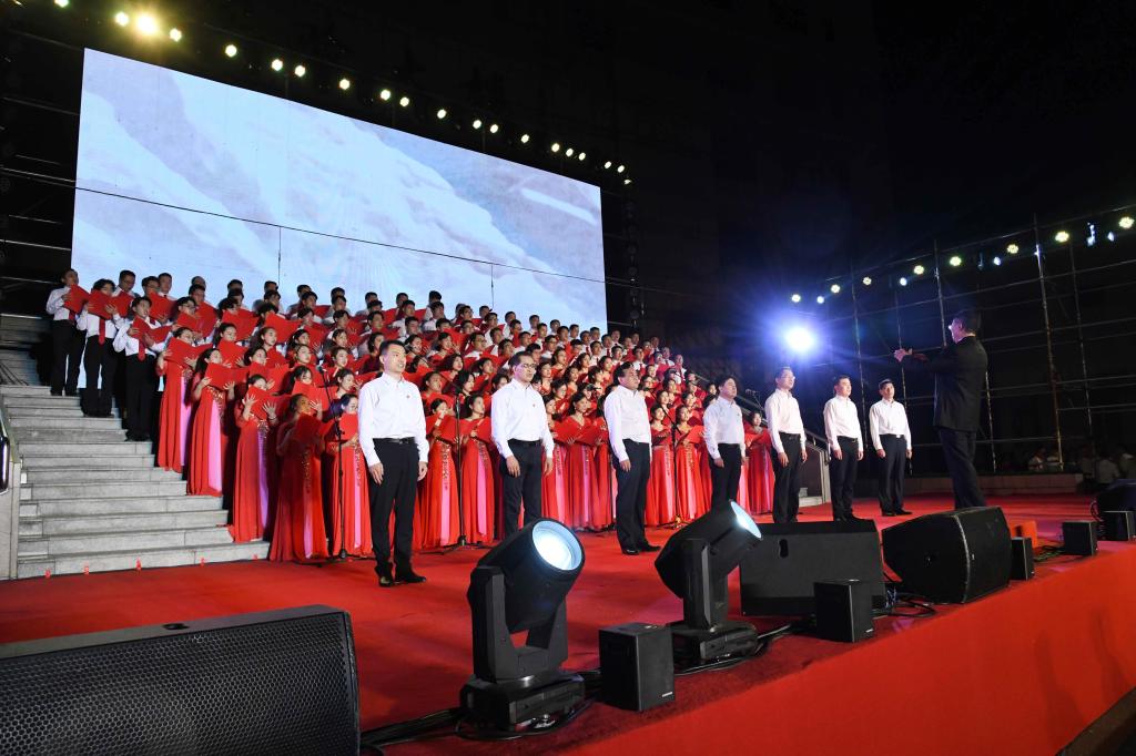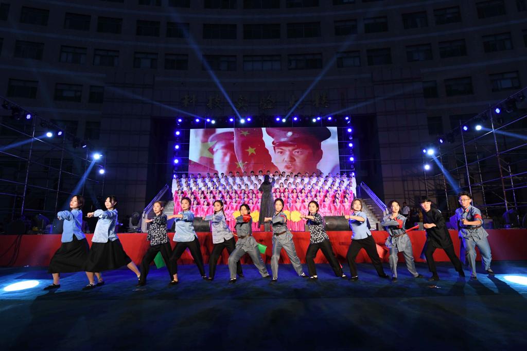 演出最后,学校党委领导班子走上舞台带领现场师生齐声高唱《国际歌》。伴着全场师生挥舞起手中的党旗、国旗,共同唱响《没有共产党就没有新中国》,本次汇演圆满落幕。