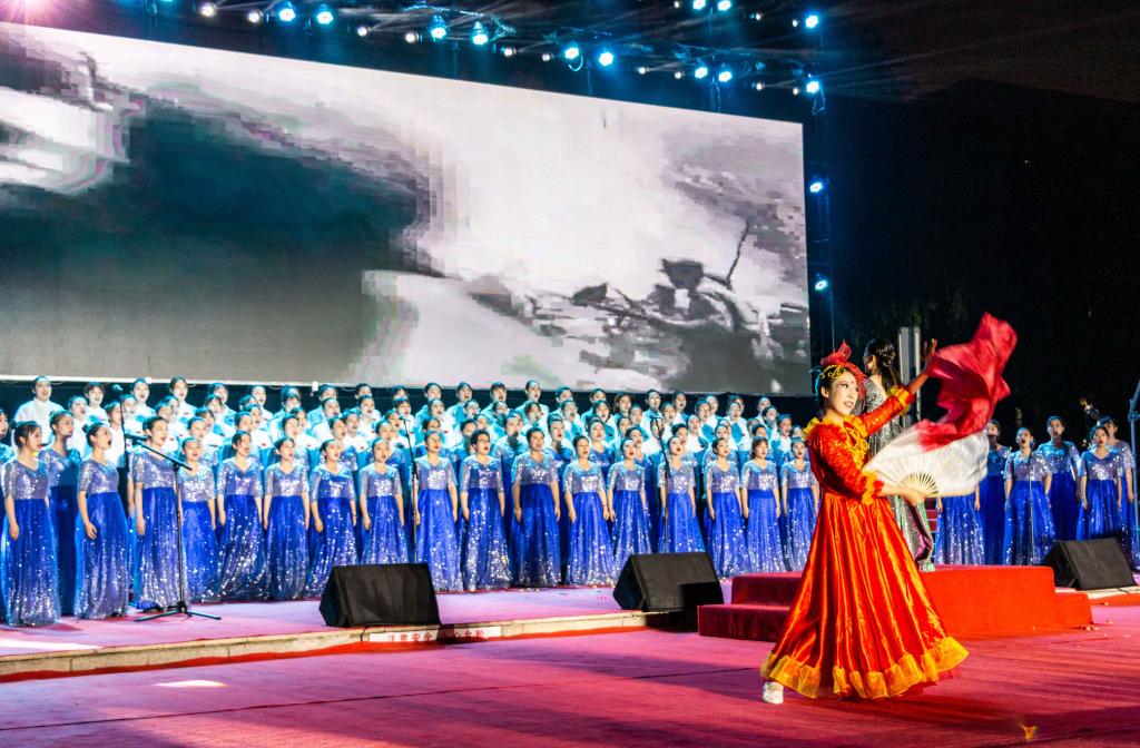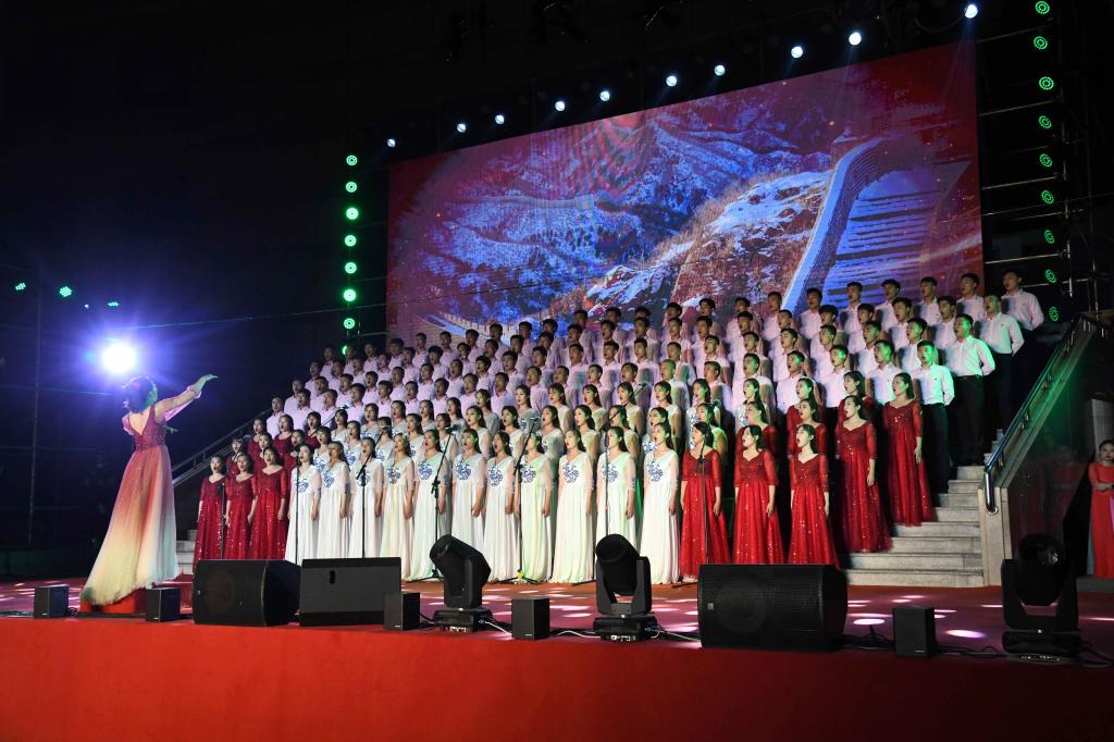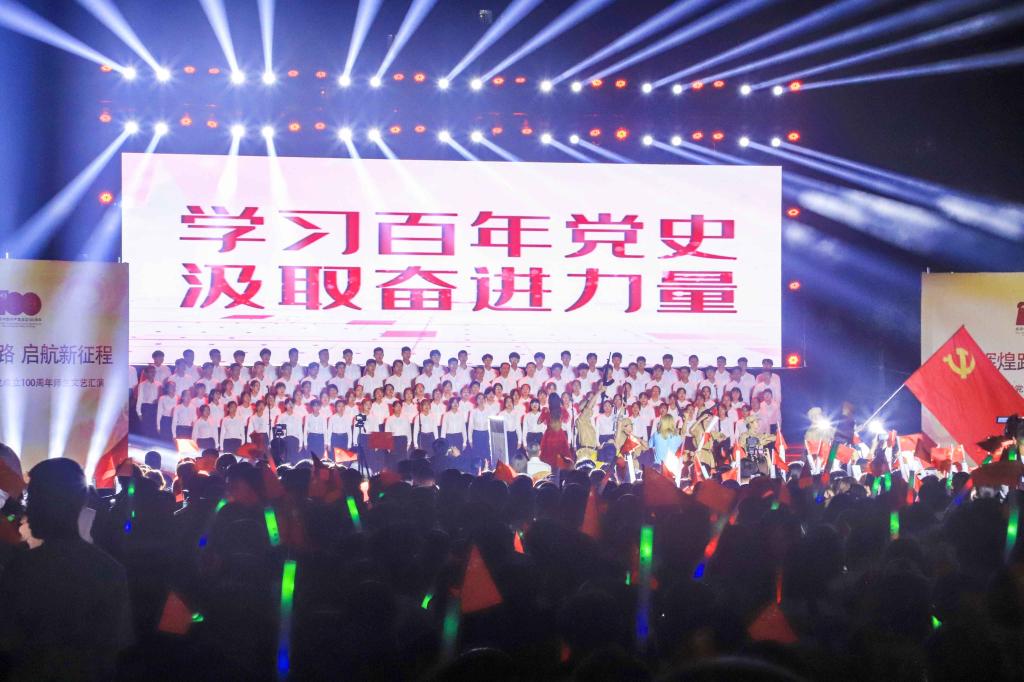 演出中,师生们的歌声或激越高昂、气势澎湃,或婉转悠扬、韵味典雅,辅以绚丽多彩的服装和舞台设计,融合优美的舞蹈表演和生动的情景短剧,并通过背景大屏幕上的一组组标志性画面呈现党的奋斗足迹和丰功伟绩,全方位打造了一场精彩的视听盛宴。