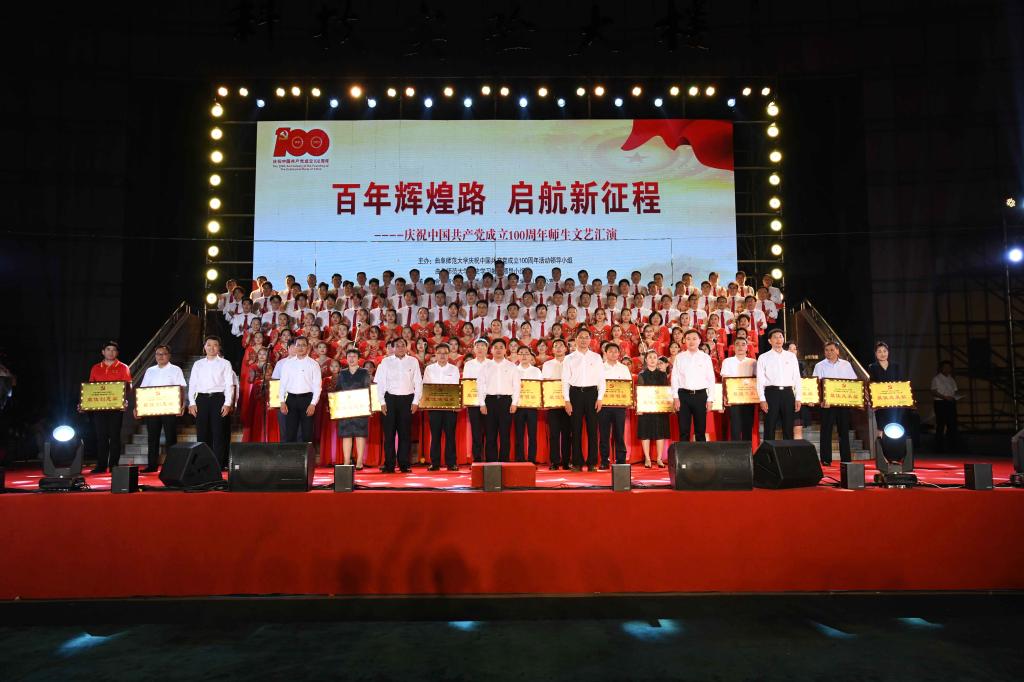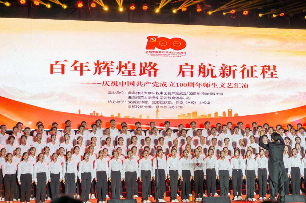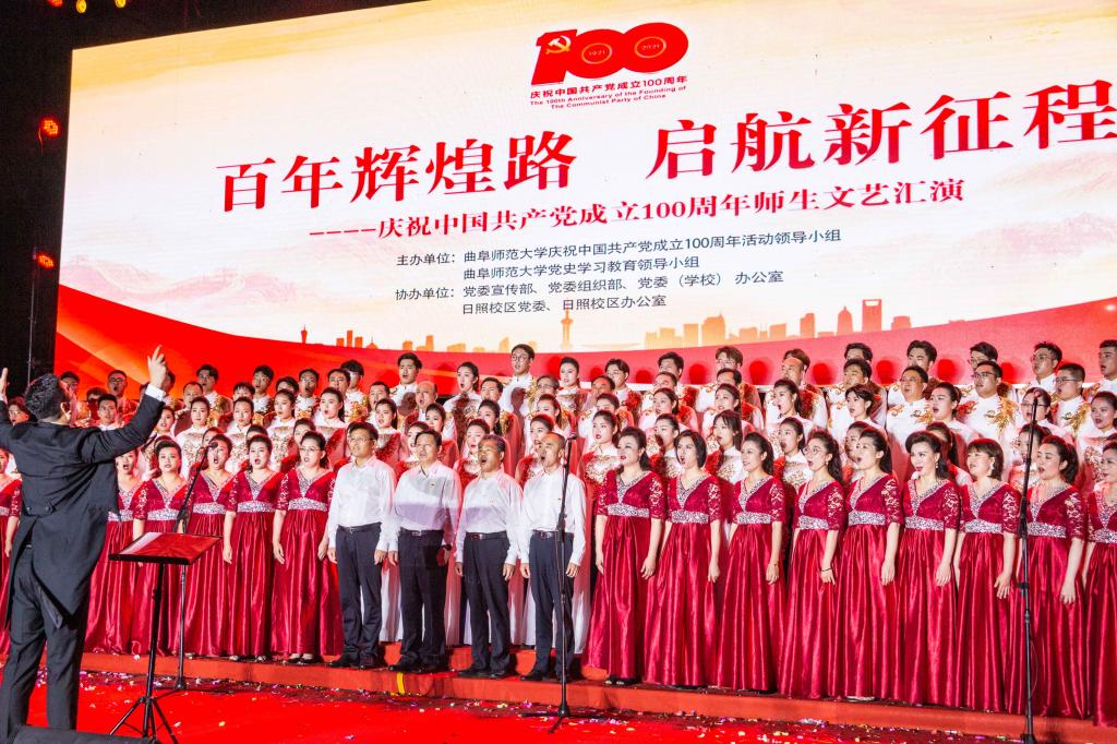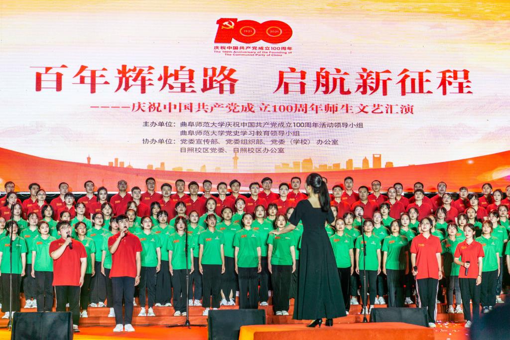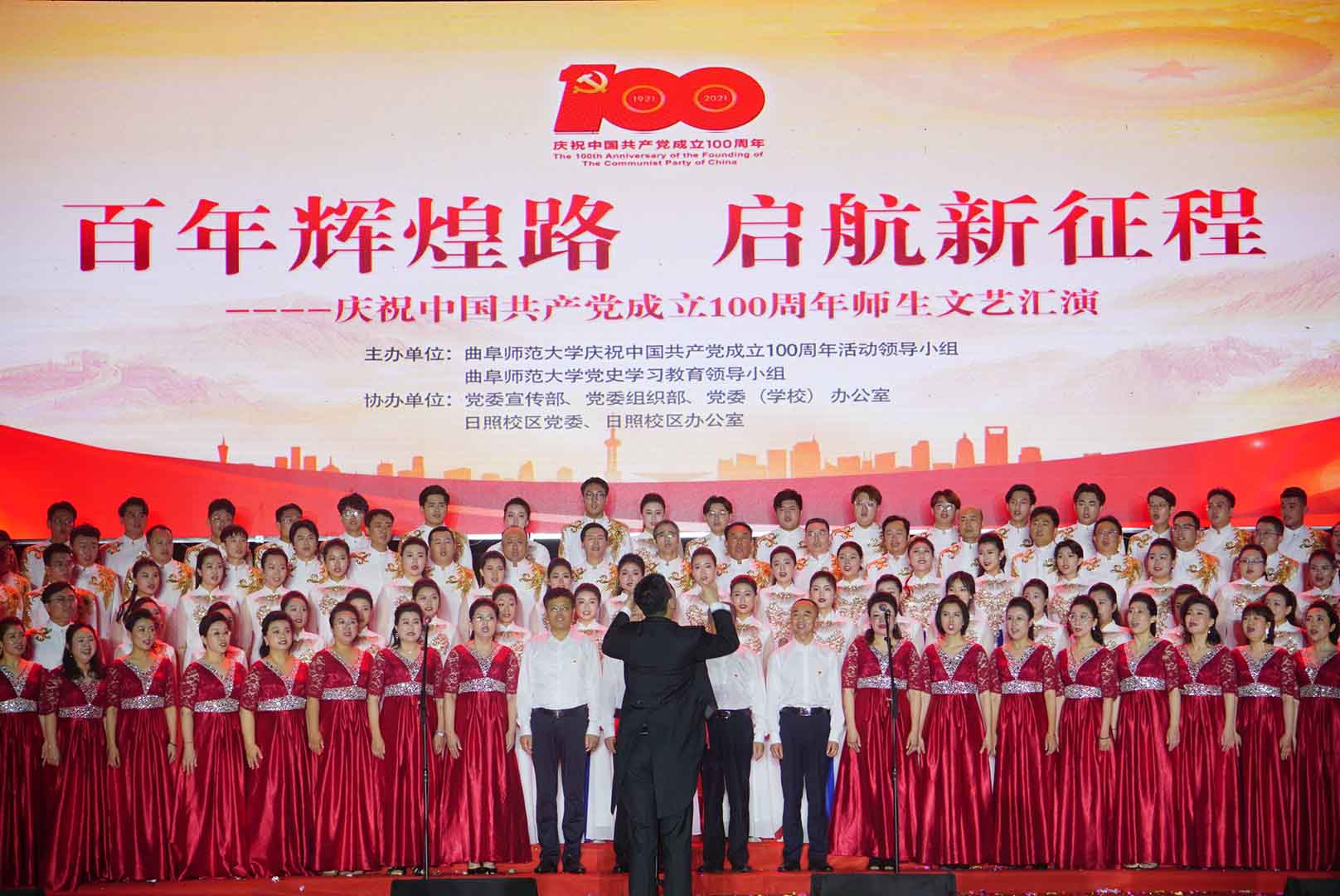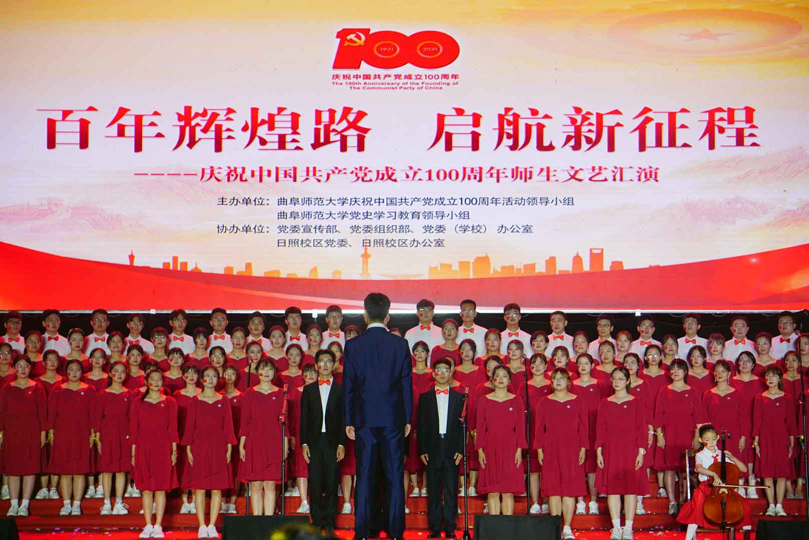 曲阜师大新闻中心讯(记者:李文振 摄影:刘萌 董少伟 王中华 马林梓 姜曰水 尹哲睿 汤捷 刘宇航 王梁 赵宇航 孙龙宇 刘泽翱 通讯员:李玉浩 鹿香玉 宋娜 李梦 刘亚蕊 孙雯 余猜 赵琳 赵伊琳 廖彤欣 王冉 罗珊) 为献礼党的百年华诞、歌颂党的辉煌历史,6月26日晚,D体育在线登录官网隆重举办“百年辉煌路 启航新征程”庆祝中国共产党成立100周年师生文艺汇演,引领广大师生在红色乐章中学党史、知党情、感党恩、跟党走。曲阜校区、日照校区共30个参演单位的师生以饱满的精神、真挚的情感和精心的节目编排,共同打造出一堂极具感染力的党史学习教育公开课。本次文艺汇演开通视频直播,在线点击量近60万。D体育在线登录官网党委书记戚万学,党委副书记、校长张洪海,与党委领导班子成员现场观看了演出。