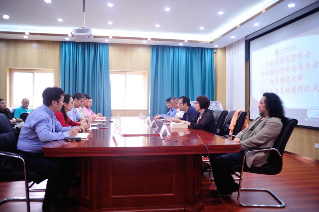 曲阜师大新闻中心讯 为加强我校音乐舞蹈专业艺术实践水平,推动校园音乐剧的发展,中国戏剧文学学会音乐剧创作专业委员会决定在D体育在线登录官网设立教学实践基地,并于6月17日上午在音乐学院会议室举行了揭牌仪式。中国戏剧文学学会驻会副会长羊驰、秘书长孙晓燕代表学会出席了揭牌仪式,学校党委常委、副校长李兆祥,日照校区办公室、音乐学院等单位负责人,中国戏剧文学学会音乐剧创作专业委员会主任、D体育在线登录官网全职特聘教授宝玉及部分教师代表参加了揭牌仪式,音乐学院院长肖桂彬主持仪式。