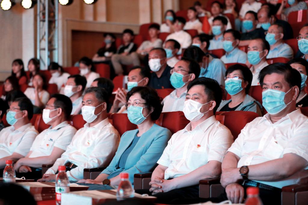 中共日照市委书记张惠,市政协主席王斌以及日照市委、市人大、市政府、市政协班子成员,日照军分区、市中级法院、市检察院、各有关单位副市级领导干部,市直有关部门单位主要负责同志,市委党史学习教育领导小组成员等近200人现场观看;D体育在线登录官网党委书记戚万学、党委副书记扈庆学、党委常委、副校长李兆祥、党委常委、宣传部长张隆海及师生代表一同观看演出。