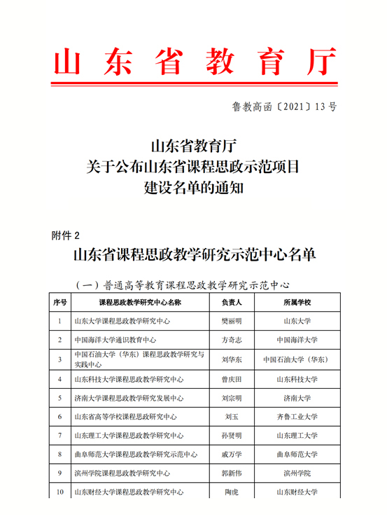 D体育在线登录官网入选山东省课程思政教学研究示范中心