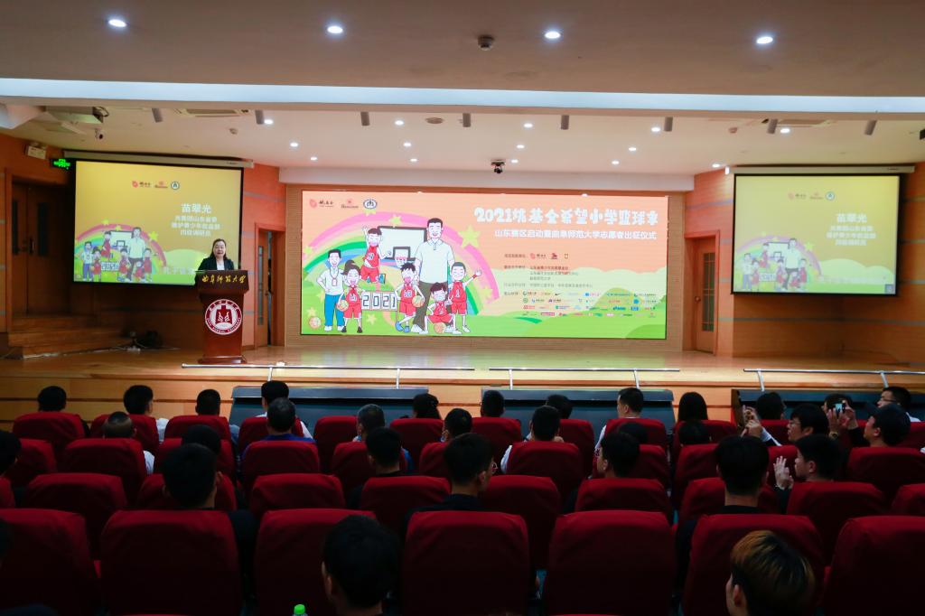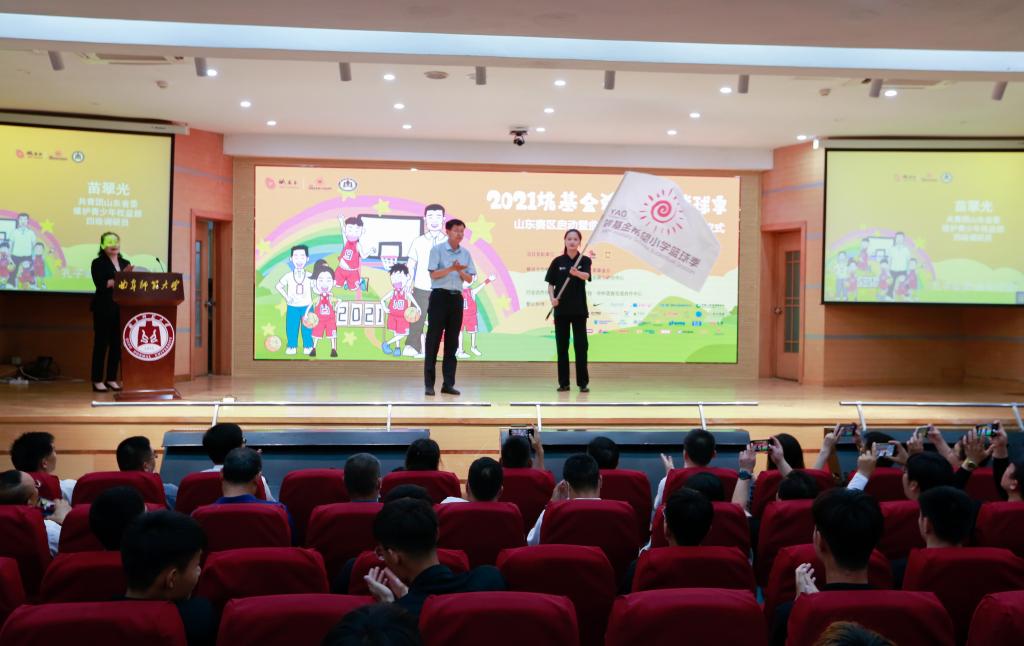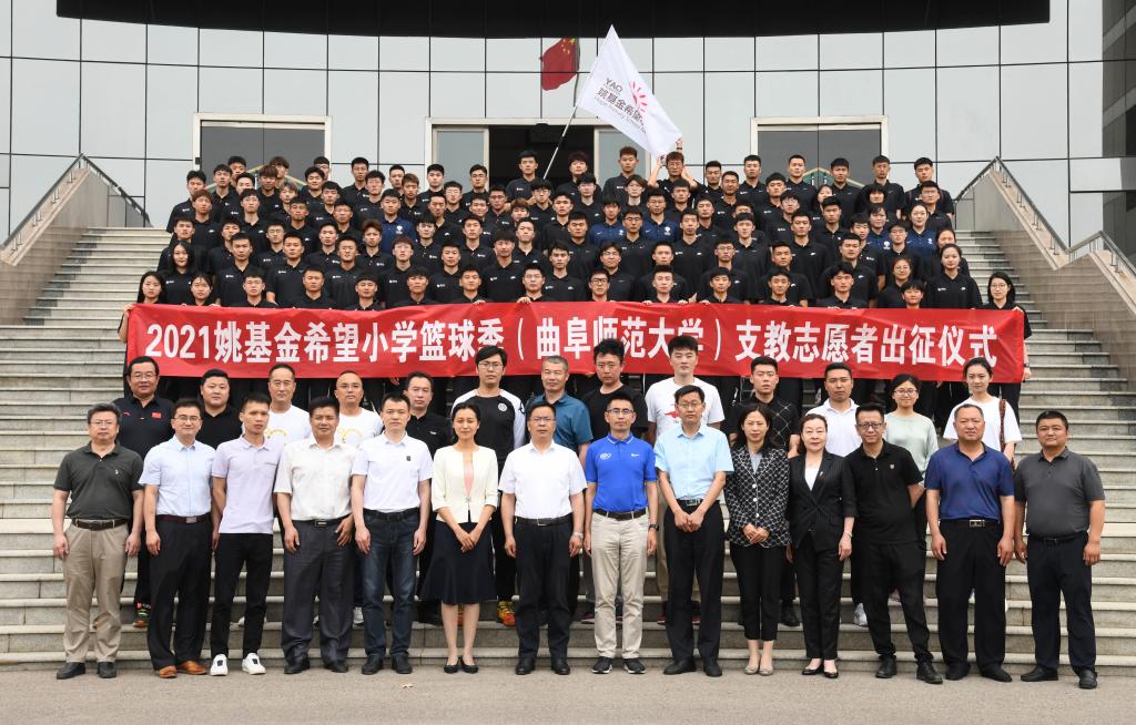 曲阜师大新闻中心讯(记者:刘萌 摄影:刘萌 董少伟)6月1日上午,2021姚基金希望小学篮球季山东赛区启动暨D体育在线登录官网志愿者出征仪式在曲阜校区举办,北京姚基金公益基金会秘书长叶大伟,D体育在线登录官网党委常委、副校长胡钦晓,党委常委、宣传部长张隆海,山东省体育局青少处四级调研员王黎虹,山东省教育厅体卫艺处副处长杨文,共青团省委维护青少年权益部四级调研员苗翠光,山东省社会创新发展与研究中心执行理事张健出席启动仪式,学校办公室、教务处、研究生处、团委、体育科学学院等单位负责人、志愿者代表等参加了活动。仪式由体育科学学院院长曹莉主持。