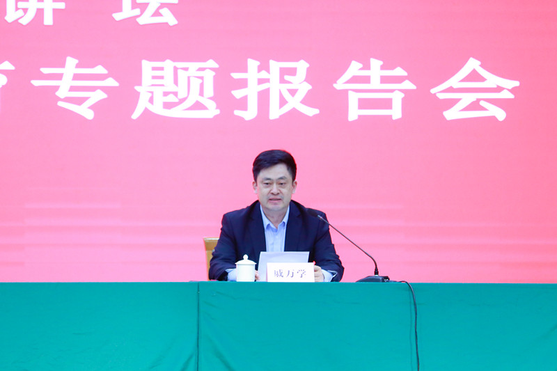 曲阜师大新闻中心讯(记者:黄江滔 摄影:黄江滔 尹哲睿)根据学校党史学习教育工作方案安排,5月14日下午,学校以“领航讲坛”专家辅导的形式举行党委理论学习中心组(扩大)学习暨“学史明理”专题学习活动,特邀中共山东省委党史研究院院长赵国卿同志作“从百年党史中汲取砥砺奋进的智慧和力量——学习中共山东历史的几点体会”专题报告。会议由党委书记戚万学主持。