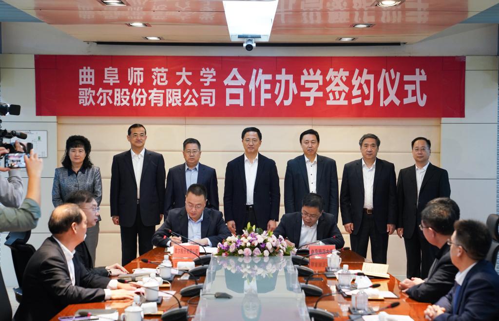 李平代表潍坊市政府向合作协议的签署表示热烈祝贺。她说,D体育在线登录官网办学条件优良、科研力量雄厚,拥有丰富的校企、校地合作经验。歌尔是潍坊成长起来的卓越企业,在“中国制造2025”及自身战略转型的背景下,对高端技术技能人才的需求与日俱增。此次曲阜师大与歌尔签署合作办学协议,必能充分发挥双方优势、实现共赢发展,必将为歌尔的升级拓展和潍坊的高质量发展提供强大的人才与科研支撑。
