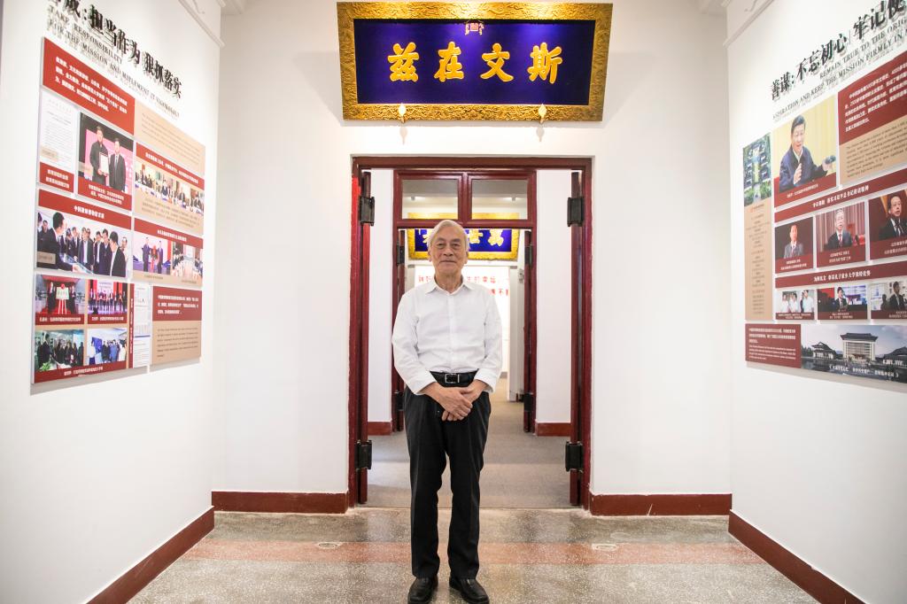 参观结束后,陈院士接受了教师博物馆工作人员的采访。他深有感触地说:“我参观过国内外很多博物馆,但教师博物馆是我参观的最有深度的博物馆。中华民族几千年的教育活动、尊师重教的优良传统在这里都得到了展示,不少展览内容我是第一次看到,对历史是很好的保护。现在博物馆很多工作还没有展开,希望在将来的新馆里扩增些‘AI+教育、智慧科技’等内容,吸取借鉴国外经验,让教师博物馆走出国门,成为国际性的教师文化交流中心。”