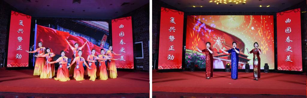 演出在大合唱《祖国吉祥》《爱我中华》中拉开帷幕,歌声饱含深情,铿锵有力,唱出了对伟大祖国的无限热爱与祝福之情;女声独唱《故乡是北京》京腔京味十足,赢得了现场阵阵掌声;现代独舞《海阔天空》以丰富的舞蹈语言展现了不畏艰难的韧劲与奋勇拼搏的斗志;京剧选段《贵妃醉酒》婉转动听的腔调,优美动人的身段,把国粹京剧的魅力展现得淋漓尽致;伴随着悠扬的古琴声,抑扬顿挫的朗诵《新年,你好!》传递了浓浓的新春气息和对大家的问候;竹笛独奏《扬鞭催马运粮忙》欢快婉转,喜气洋洋,表达了丰收的喜悦心情;太极拳表演一招一式刚柔并济、如行云流水,展现了传统武术的魅力;男声独唱 《月满西楼》古典韵味浓厚,为大家营造了唯美的诗词意境;二胡齐奏《万马奔腾》气象万千,激越昂扬,表达了曲园人奋勇争先的精神风貌;舞蹈《我和我的祖国》表达了对祖国母亲深沉的热爱;团拜会表演在京剧联唱《没有共产党就没有新中国》字正腔圆的唱腔中落下帷幕。