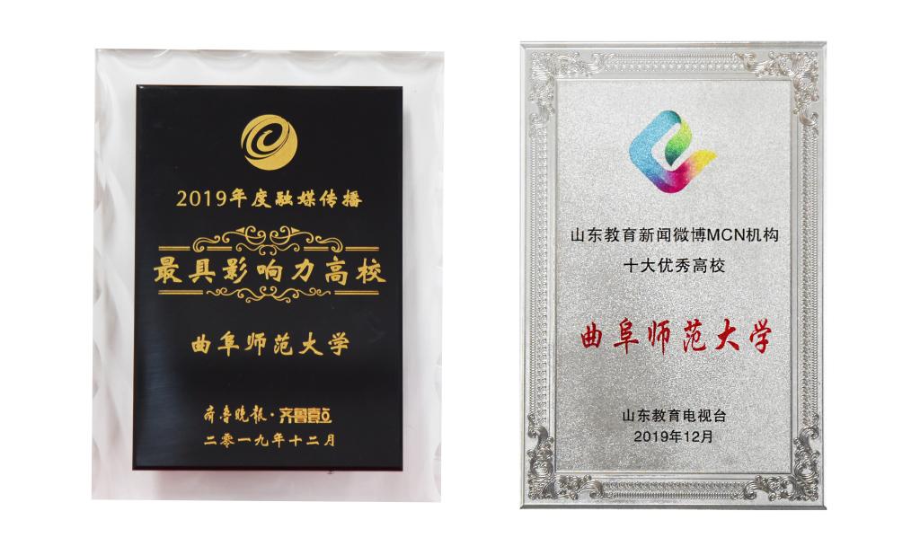 此外,我校连续三年还被《中国教育报》评为教育新闻宣传先进单位;荣获抖音“山东高校最具潜力单位”;荣获山东教育新闻微博MCN机构十大高校;齐鲁晚报齐鲁壹点“2019年度融媒传播最具影响力高校”等多项荣誉。