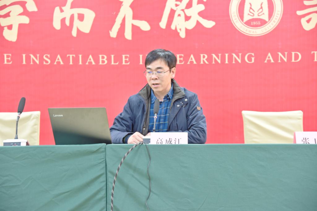 张洪海对高成江应邀为我校做经验分享报告表示热烈欢迎,对其长期关注支持曲阜师大的发展表示衷心感谢;高度赞誉了高成江在学术领域所取得的成就;介绍了学校近年来在科研领域的发展情况,希望以此次来访为契机,进一步加强双方的合作与交流。