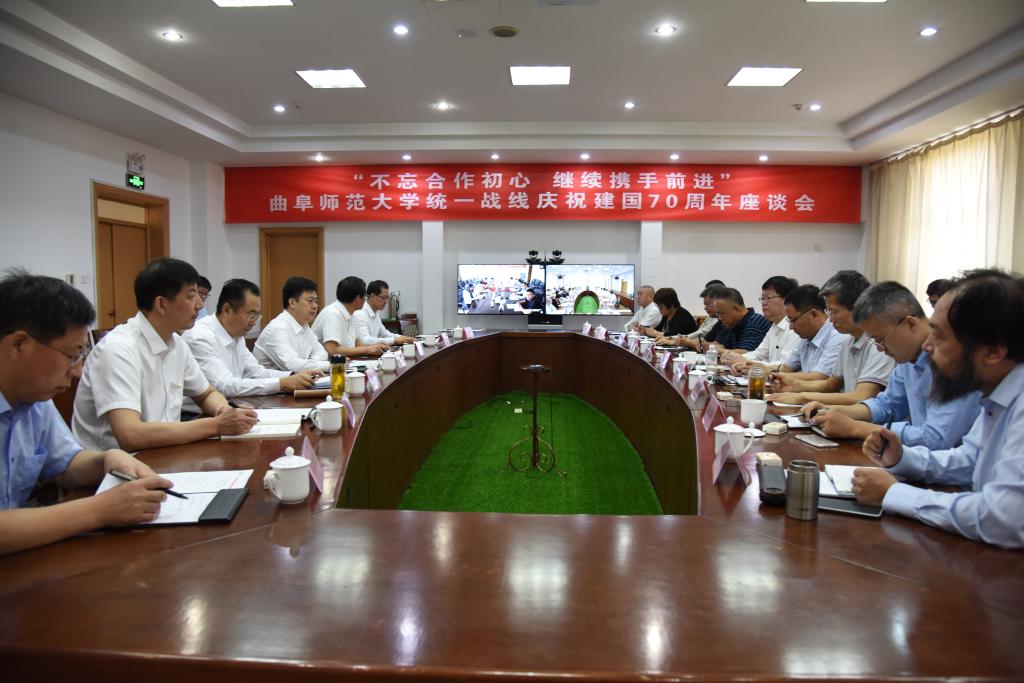 省人大常委、民盟主委张玉忠,省政协委员、泰山学者武玉强,省政协委员李海清,省政协委员、民建主委桑哲,曲阜市政协委员、民进主委吴兆灵,九三学社主委汤敬东,无党派人士代表、泰山学者满忠晓,日照市人大常委会法工委委员袁兆春,分享了共迎祖国七十华诞的心得体会,表达了复兴曲园荣光,建设孔子家乡一流大学的决心与信心。