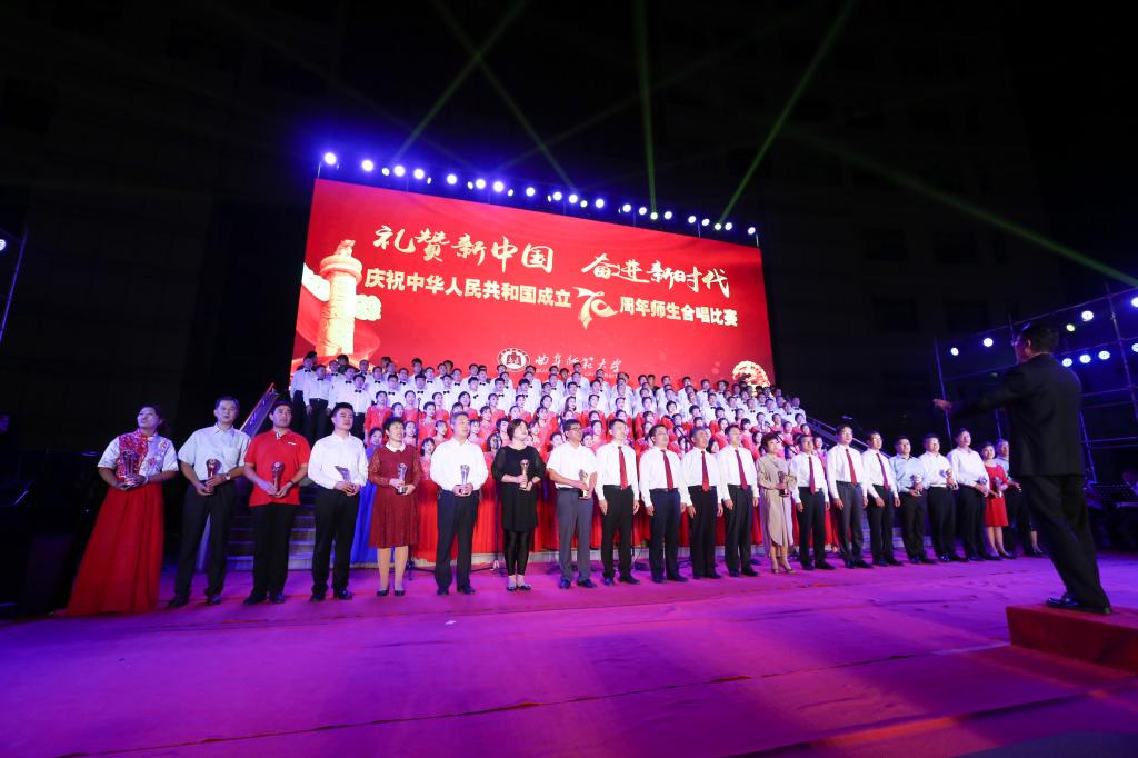 金秋曲园满目中国红,儒风海韵齐颂时代情。为热烈庆祝中华人民共和国成立70周年,激励广大师生更好地坚守教育报国初心、担当立德树人使命,9月27日晚,我校隆重举行“礼赞新中国 奋进新时代”师生合唱比赛。党委书记戚万学、校长张洪海等学校党委领导集体出席活动观看演出,并为获奖队伍颁奖。