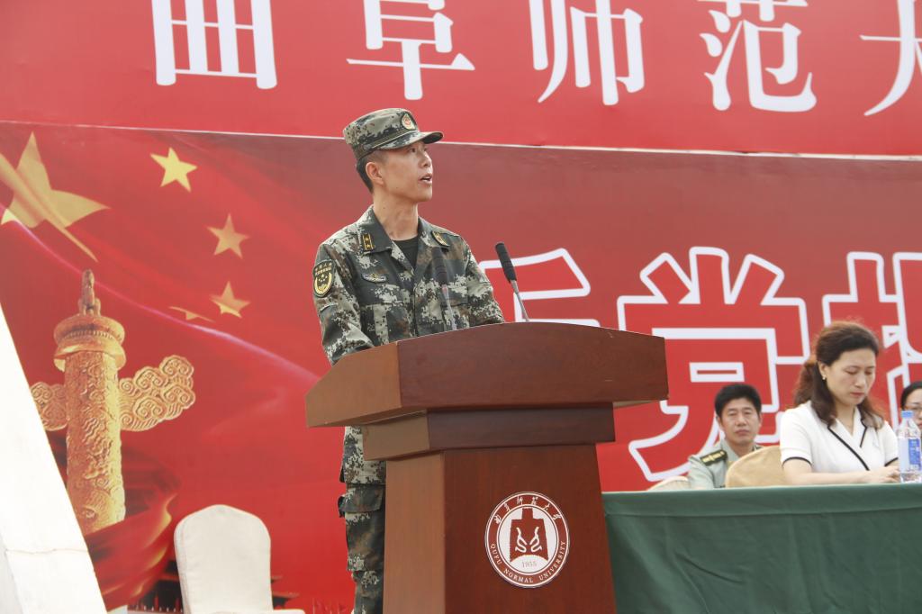 党委副书记扈庆学在动员大会上讲话。他指出,军训是学校进行国防教育的重要组成部分,是大学的第一课,更是必修一课、重要一课。希望同学们能够在军训中通过铁的纪律、铁的要求磨练出铁的意志、铁的品质;希望同学们传承曲园优良传统,将军训精神与曲园精神结合起来,在军训中、在未来的学习生活中充分汲取养分,修得大智慧,身沐君子风,以更大的情怀、更苦的奋斗、更优的才干,干出宏伟事业,成就精彩人生。