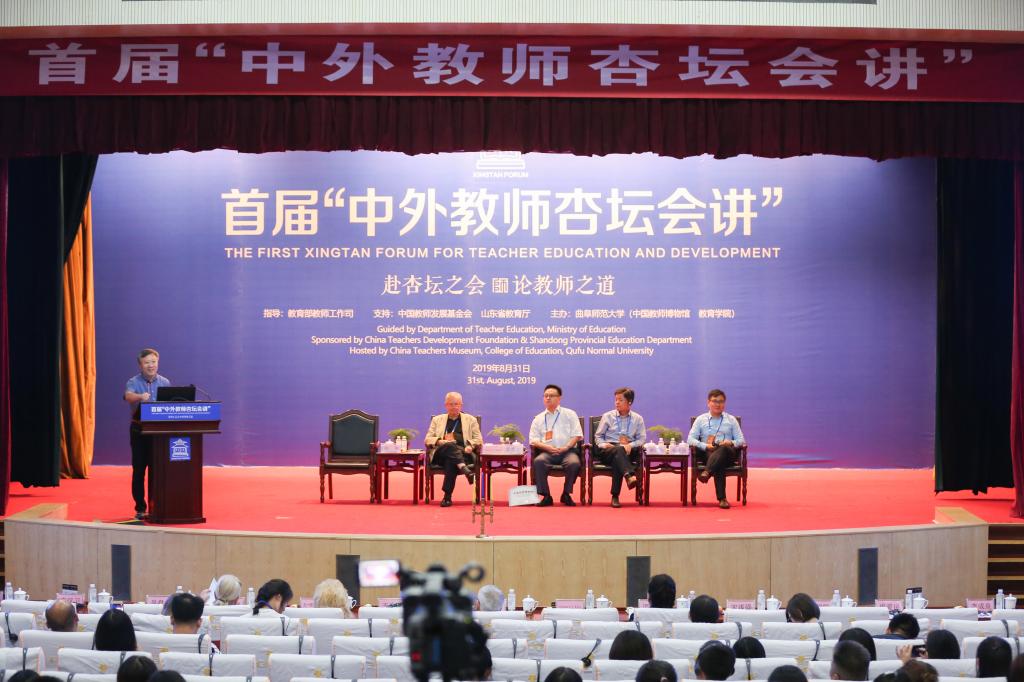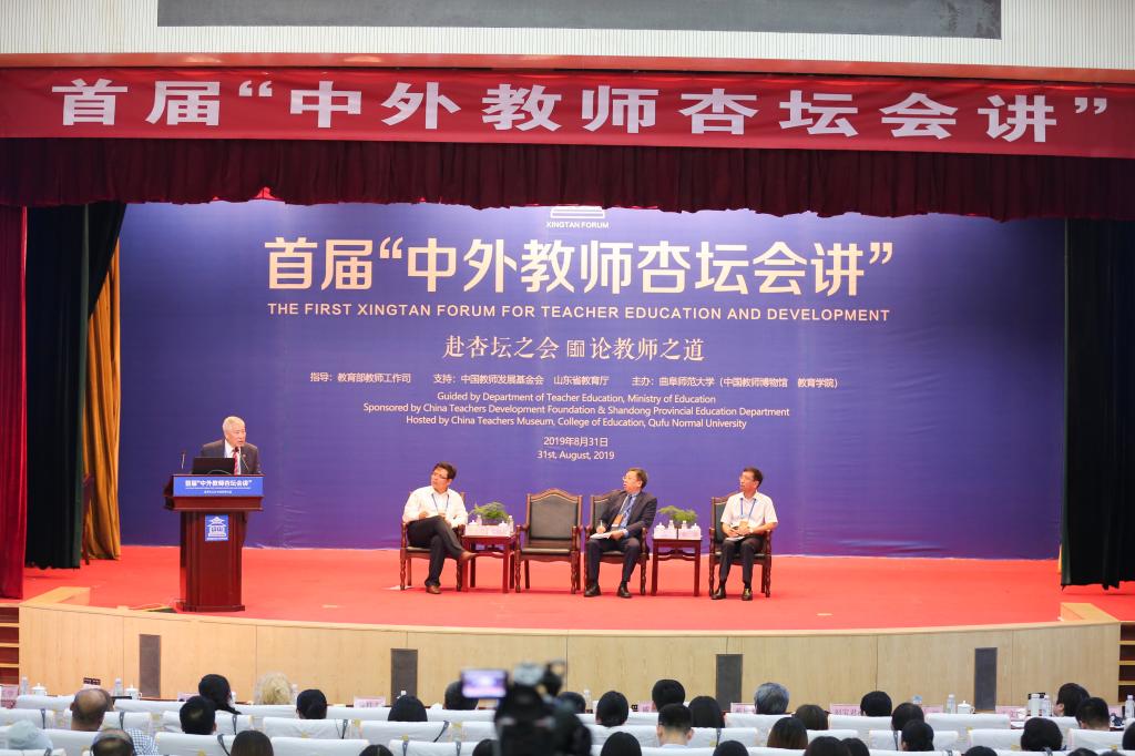 中外学者共赴杏坛之会,名家荟萃纵论教师之道。8月31日,首届“中外教师杏坛会讲”在孔子故里曲阜隆重开讲,本次会讲在教育部教师工作司指导下,中国教师发展基金会、山东省教育厅、田家炳基金会支持下,由D体育在线登录官网(中国教师博物馆、教育学院)主办。教育部教师工作司一级巡视员刘建同,中国教师发展基金会秘书长王建光,我校党委书记戚万学,山东省教育厅教师工作处处长刘宝君,出席本次会讲。会讲开幕仪式由我校党委副书记扈庆学主持。