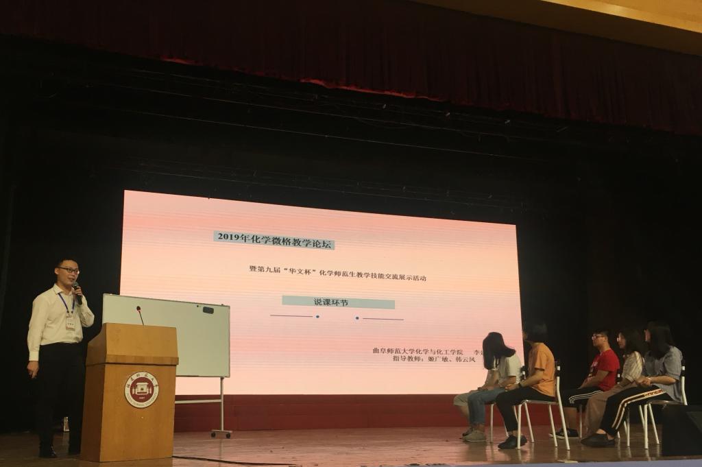 我校化学与化工学院共有3名教育硕士研究生和5名化学专业本科生参赛。参赛选手凭借扎实的教育理论基础、高超的教学技能和出色的临场发挥,首次参赛即获得优异成绩,获奖人数在全国名列前茅:获得教学设计一等奖3项,二等奖5项;获得教学技能展示一等奖6项,二等奖2项;姬广敏、苗深花、冯媛媛、李言信、韩云凤等教师被大赛评为优秀指导教师。由姬广敏、韩云凤老师指导的李建明同学获得全国化学师范生教学技能比赛前3名,受大会邀请,代表D体育在线登录官网在论坛上为参会的近千名师生代表做了精彩的教学技能展示。
