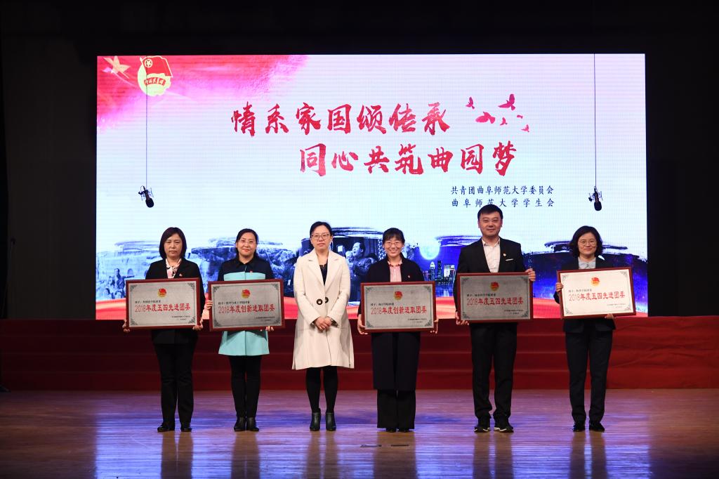活动现场宣读了《关于表彰共青团工作“突出贡献奖”和2018年度“五四红旗团委”、“优秀青年工作者”的通知》,出席活动的领导嘉宾分别为获得“突出贡献奖”、“五四红旗团委”、“创新进取团委”、“五四先进团委”、“十佳团支书”和“五四红旗团支部”的获奖代表颁奖。