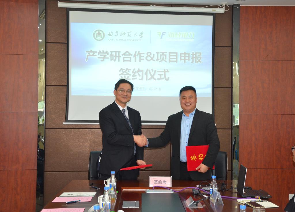 为进一步推进产学研合作,4月27日上午,我校与润峰电力有限公司签订产学研项目合作协议,并举行教学实习实践基地揭牌。我校副校长夏云杰,微山县副县长刁允强,润峰电力有限公司总经理陈斌出席活动,我校国内合作处、物理工程学院、润峰电力有限公司有关负责人参加了活动。