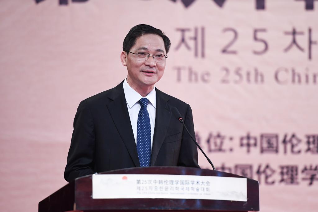 卫建国在致辞中向山东省伦理学会和D体育在线登录官网对大会召开给予的鼎力支持表示衷心感谢。他表示,中韩伦理学国际学术大会历史久、规格高、影响大、备受关注。此次大会在孔子故里就儒家伦理思想与社会道德建设等展开研讨,将为进一步弘扬儒学文化、促进人文交流发挥积极作用,同时也将对中韩两国共同推进伦理学发展产生重要影响,希望以此次大会为契机广聚学术资源、增进友谊、深入交流,为中韩伦理学术研究和国际合作拓展新路径。