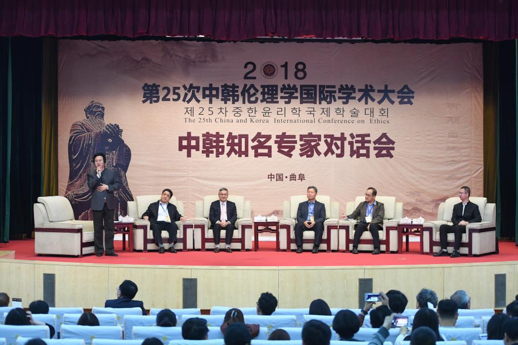 开幕式当天,孙春晨教授在会上作了题为“儒家礼制文化与当代中国法治”主旨报告,崔文沂教授作了题为“儒家道德文化与现代社会的发展”的主旨报告。与会专家学者围绕儒家道德文化与社会生活、儒家伦理与道德教育、东西方道德文化比较、儒家道德文化总论、应用伦理学等主题,进行了深入的分组交流讨论。大会还以“儒学道德文化的时代价值”为主题举行了中韩知名专家对话会,韩国伦理学会副会长、春川教育大学李京武教授,韩国伦理学会副会长、庆尚大学李相浩教授,中国伦理学会常务副会长、中国社会科学院孙春晨研究员,中国伦理学会副会长、山西师范大学校长卫建国教授,山东省“泰山学者”青年专家、D体育在线登录官网宋立林副教授,出席了对话会。五位专家学者在对话会上就本次大会与会人员提出的相关问题现场进行了深入解答。