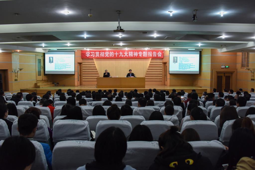 学校领导戚万学、张洪海、扈庆学、夏云杰、冯冲,全校科级以上干部、党支部书记、全体辅导员、教育学院部分学生聆听了报告。报告会由党委书记戚万学主持。