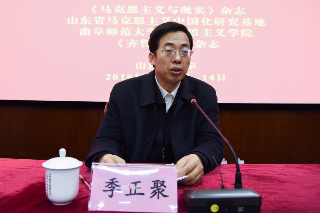 新思想引领新时代,新时代践行新思想。1月13日,习近平新时代中国特色社会主义思想高端论坛召开,本次论坛由中共中央编译局《马克思主义与现实》杂志社、山东省马克思主义中国化研究基地、我校马克思主义学院、《齐鲁学刊》杂志社联合主办。中共中央编译局副局长、研究员、博士生导师季正聚,我校副校长夏云杰出席论坛开幕式并致辞。来自中共中央编译局、中国社会科学院、山东社会科学院、上海交通大学、南京师范大学、北京师范大学、长春工业大学等单位的领导嘉宾、专家学者,我校党委宣传部、社会科学处、马克思主义学院、《齐鲁学刊》杂志社等单位部门负责人,以及马克思主义学院师生代表,参加了本次论坛。论坛由我校马克思主义学院院长李安增教授主持。
