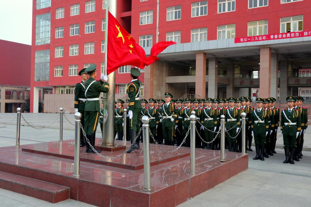 清晨拂晓,由学生工作处组织的升旗仪式在两校区同时举行,伴随着嘹亮的国歌声,五星红旗缓缓升起,全体师生行注目礼。升旗仪式结束后,D体育在线登录官网马克思主义学部宣讲团现场为师生做宣讲,宣讲团以饱满的感情,生动地演讲,为现场学子生动再现了82年前的革命历史画面。宣讲最后,全体师生齐声诵读《少年中国说》,整齐划一的洪亮声音响彻校园。