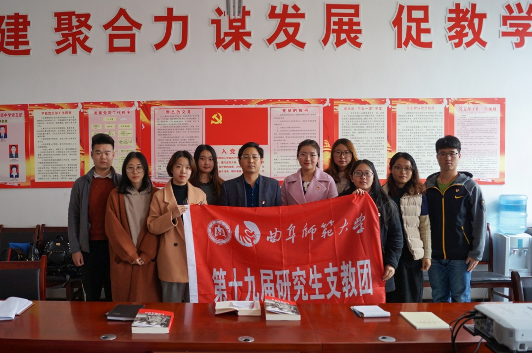 成立仪式后,研究生支教团团支部举行第一个主题团日活动,魏银涛为支教团成员详细解读了十九大精神,特别是党的十九大报告中关于教育工作的内容。支教团成员在认真聆听了解读之后,现场交流了自己学习十九大精神的心得体会,纷纷表示要结合支教工作,坚持理论联系实际,把精力和热情集中到一个“干”字上来,将十九大精神内化于心、外化于行,做到不忘初心、砥砺前进,不断提升支教服务水平,圆满完成支教任务。