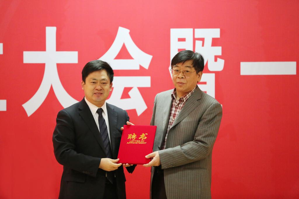 学校第一届理事会理事长、学校党委书记戚万学为理事会理事颁发了聘书。