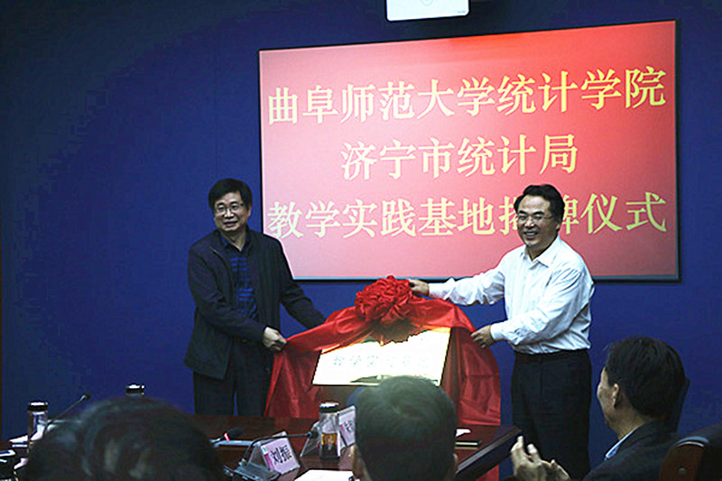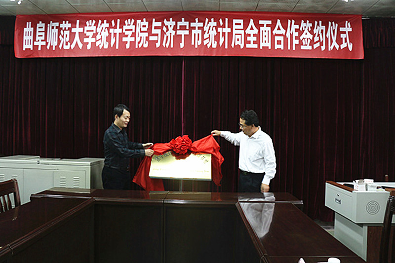 签订协议前,双方为“济宁统计系统教育培训基地”、“D体育在线登录官网教学实习基地”揭牌。
