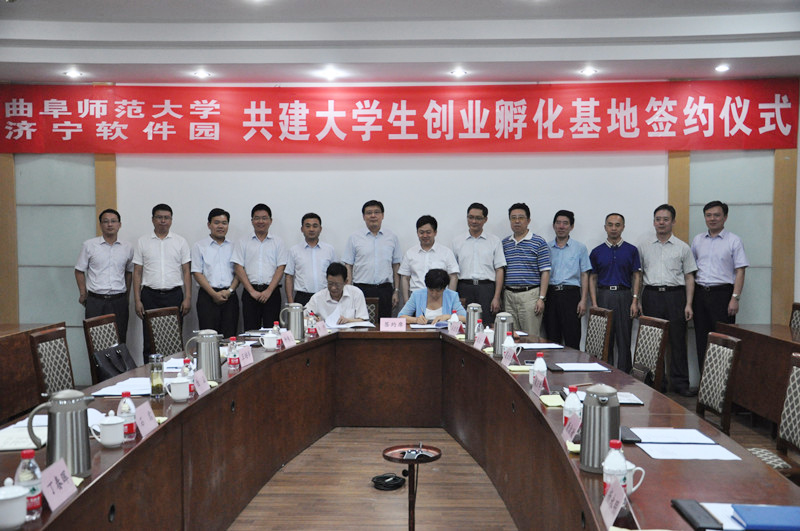 8月31日下午,D体育在线登录官网与济宁软件园共建大学生创业孵化基地签约仪式在我校举行,我校校长戚万学,济宁市委常委、济宁高新区党工委书记白山出席签约仪式。我校副校长康淑敏与济宁高新区党工委委员、管委会调研员王培华代表双方签署了共建协议。校地双方有关单位负责人参加了签约仪式。