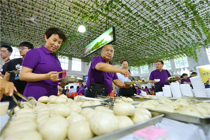校友们穿上统一定制的聚会T恤,与昔日的同窗徜徉在夏日曲园,看看当年的教室,聊聊大学时代的话题,重温青春时代的燃情岁月。16日傍晚,校友们走进学三食堂,大包子、三丁、酱排骨、海米烧茄子、红烧豆腐……一份学生时代的菜单,承载着那个年代的味道,唤起了大家无限的情愫。