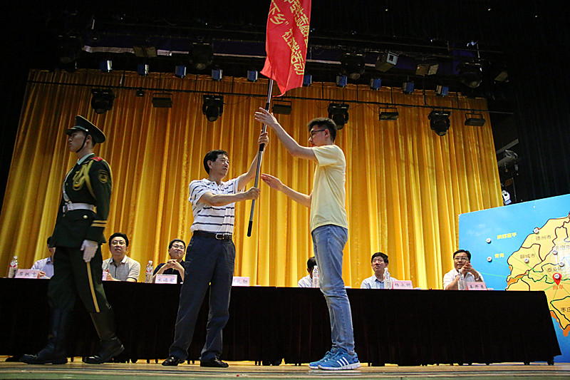 荆兆勋为各社会实践服务队授旗,并鼓舞他们在此次实践活动和志愿服务中圆满完成任务,在实践成才的广阔舞台中展现出崭新的精神风貌。仪式的最后,荆兆勋与实践团队代表共同为此次出征仪式点亮路线图,标志着暑期社会实践活动正式拉开序幕。