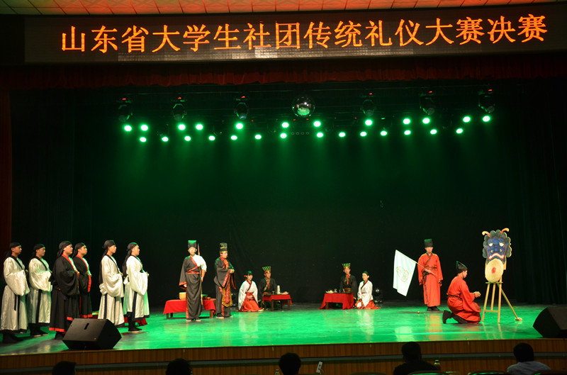 6月5日,第二届山东省大中专学生社团节系列活动之“山东省大学生社团传统礼仪大赛”决赛在鲁东大学落下帷幕,来自省内15所高校的近200名师生,展示了成人礼、拜师礼、祭月礼、射礼和婚礼等传统礼仪,我校历史文化学院“洙泗学社”传统礼仪展演队表演的乡射礼荣获一等奖。