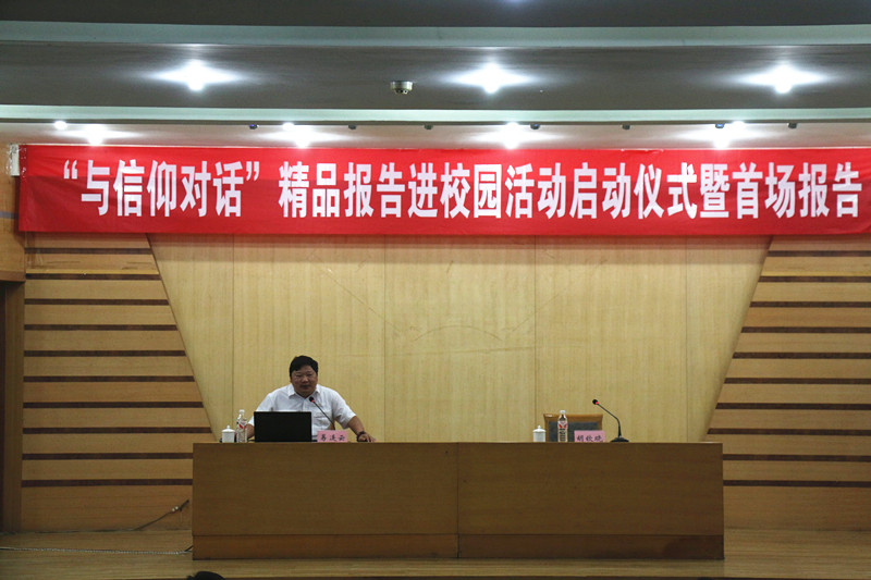 5月31日,我校在孔子会堂举办“与信仰对话”精品报告进校园活动启动仪式,副校长康淑敏出席活动,学生工作处、社会科学处、团委负责人及各学院党委党总支副书记、全体辅导员以及主要学生干部代表听取了报告。