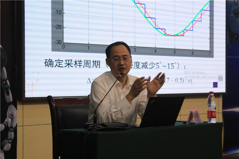 简短介绍后,报告正式开始。孙富春教授从“机器人概述”、“智能机器人发展”、“智能机器人新技术”、“工业4.0的机遇和挑战”以及“智能机器人与工业4.0”五个方面展开报告。他首先以时间为轴向大家介绍了国内外智能机器人的发展现状,并对此作出简要分析和概括,使同学们对机器人有了清晰的视觉认知。随后,孙教授深入浅出地讲解了机器人应用中的新技术并结合实际对灵巧精细的智能机器人的发展趋势做出大胆预测,同时,他勉励同学们学会结合理论与实践,将晦涩难懂的专业知识简单化。“轻风赞誉精英赛,创业争锋梦起航”,孙教授在报告最后为机器人大赛赋诗一首预祝此次大赛取得圆满成功。